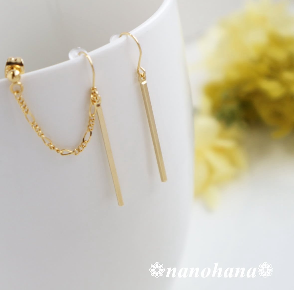 《ゴールドスティック2連フックピアス 》046サージカルステンレス