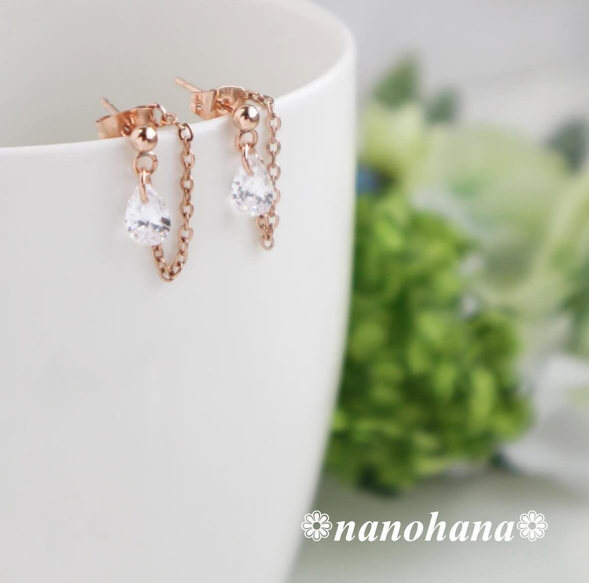 ピンクゴールドのやわらかな色味と、大粒の雫ジルコニアの透明感が絶妙にマッチ✧