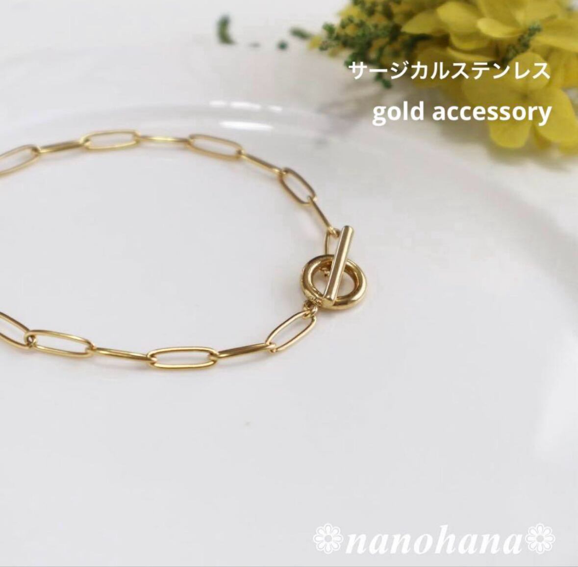 《 オーバルチェーンブレスレット・ゴールドマンテル 》616(オールサージカルステンレス)