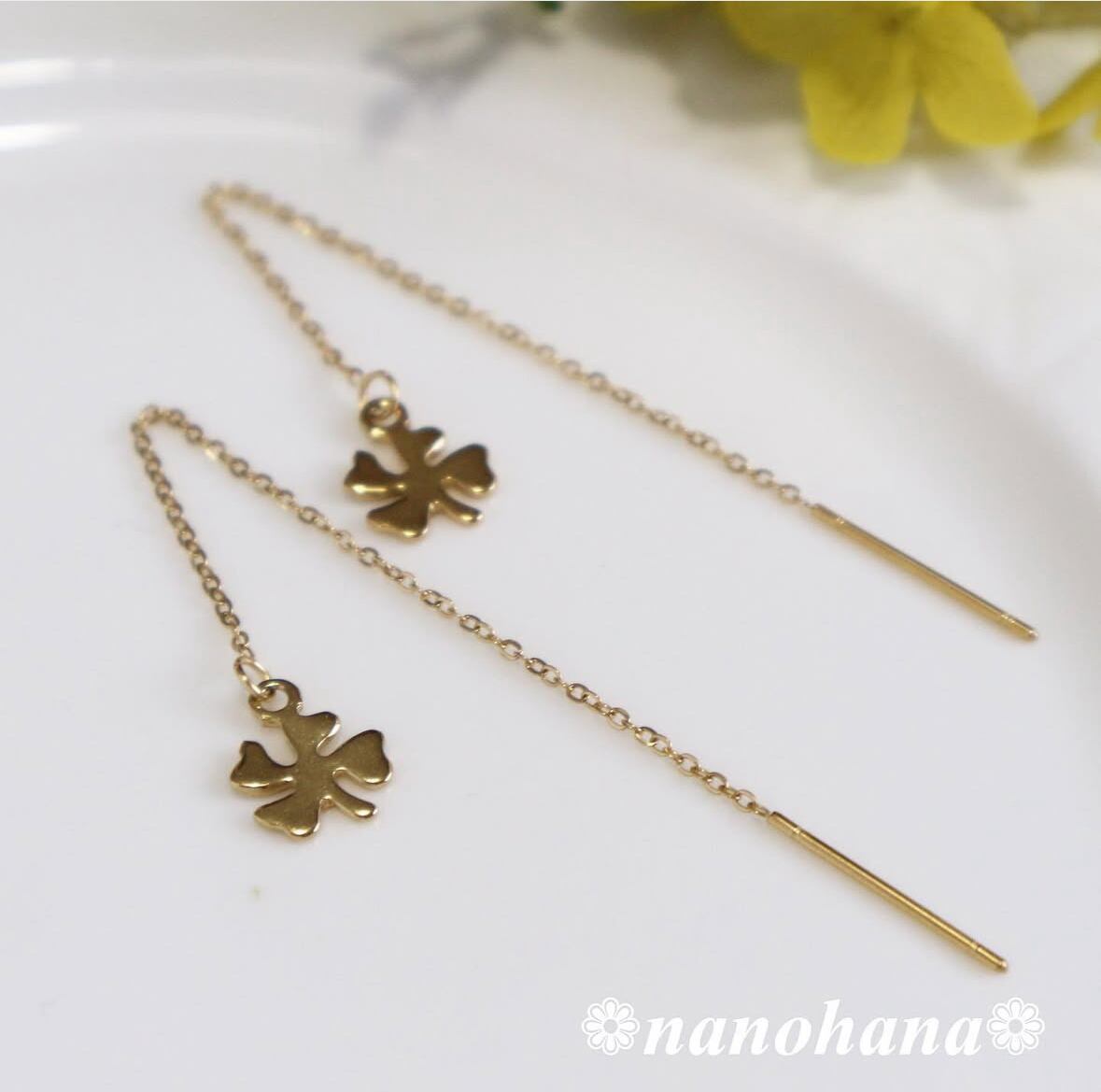 幸せの象徴「四つ葉のクローバー」が、さりげなく揺れるアメリカンピアス。