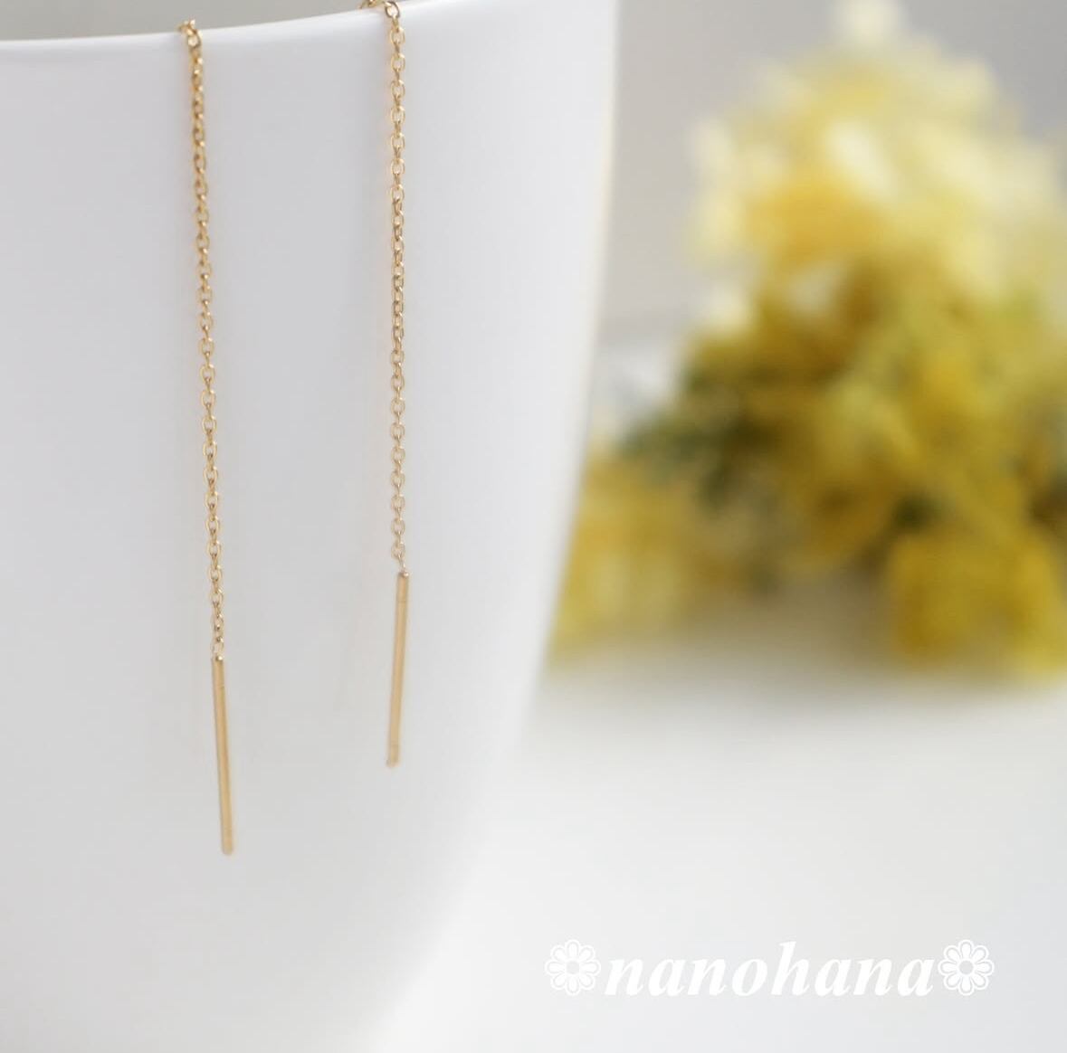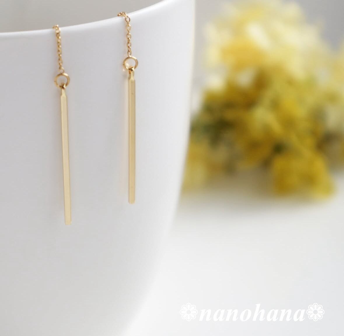 ゴールド/アメリカンピアス/ロングピアス/スティック/金属アレルギー対応/華奢デザイン