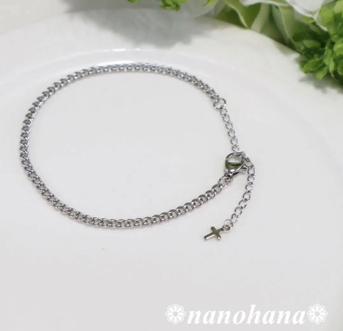 シンプルなキヘイチェーンに、小さなクロスを添えた上品なブレスレット。