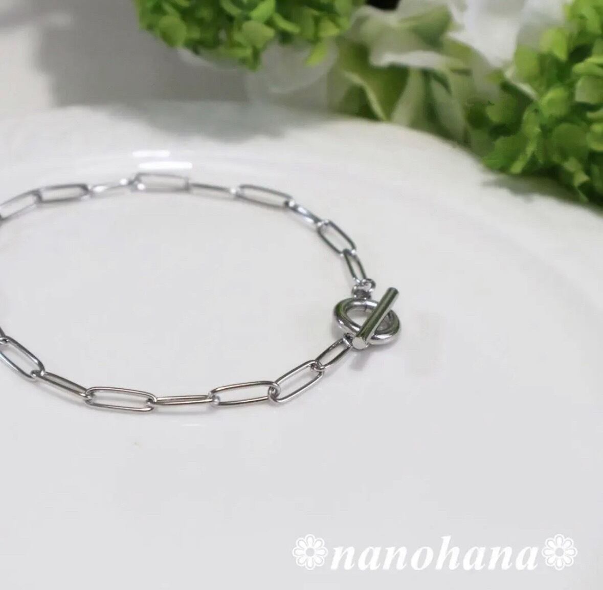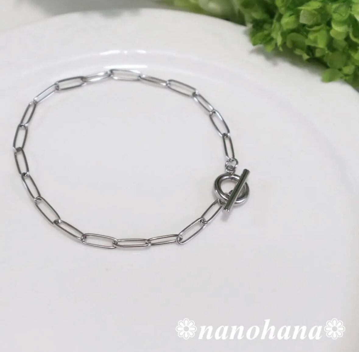 シルバー/オーバルチェーン/サージカルステンレス/ブレスレット/マンテル留め具