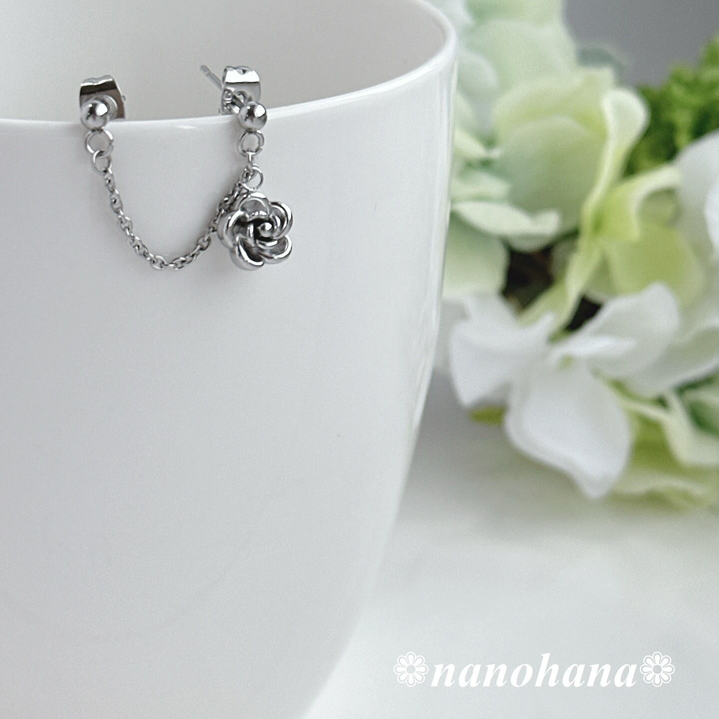 《 ぷくバラ2連ピアス・シルバー 》457オールサージカルステンレス・片耳用