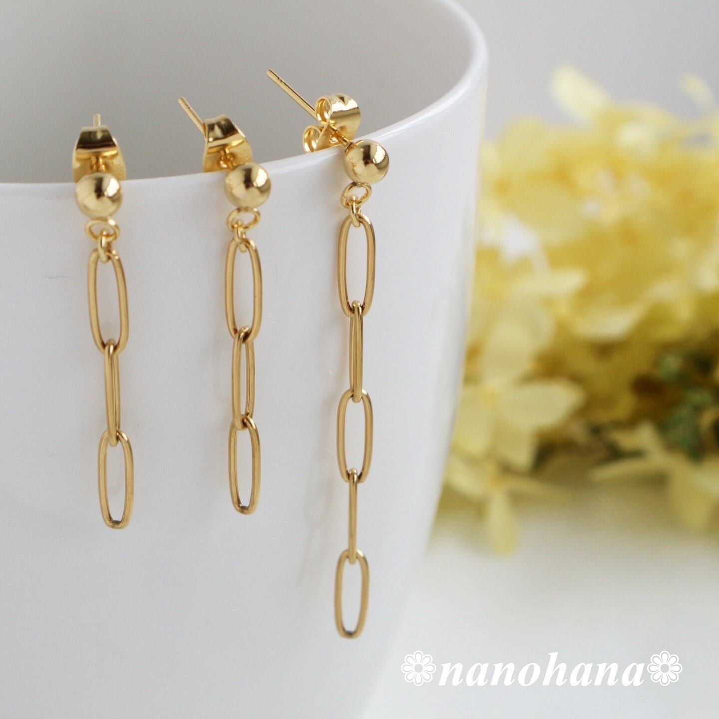 ゴールド/オーバルチェーン/アシンメトリー/サージカルステンレス/シンプルピアスセット