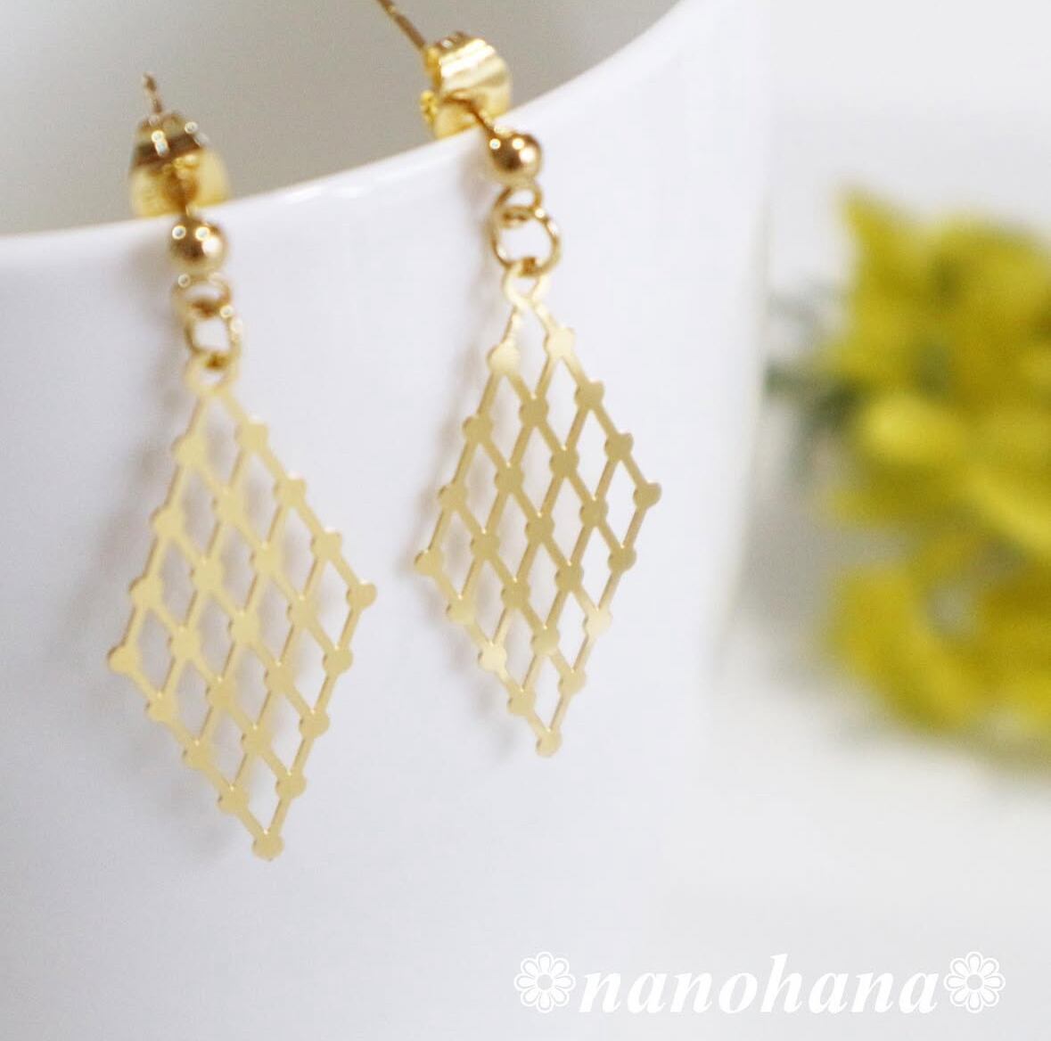美しい透かし模様が魅力のダイヤ型ピアス✦