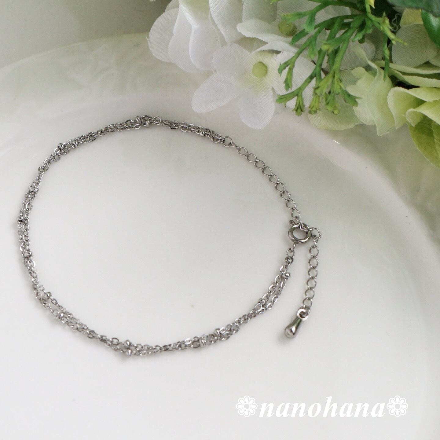 シルバー/ブレスレット/サージカルステンレス/2連チェーン/華奢/