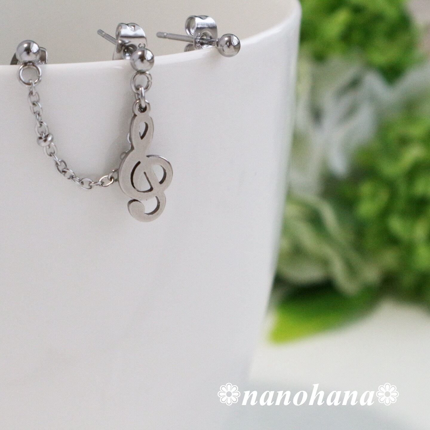 シルバー/サージカルステンレス/2連ピアス/ト音記号