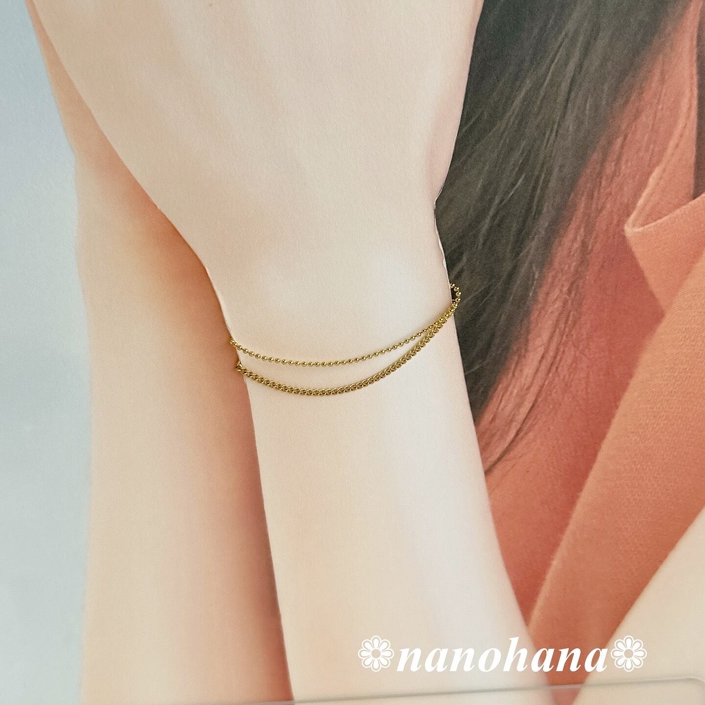 《 ボールキヘイ2連チェーンブレスレット・ゴールド 》609(オールサージカルステンレス)