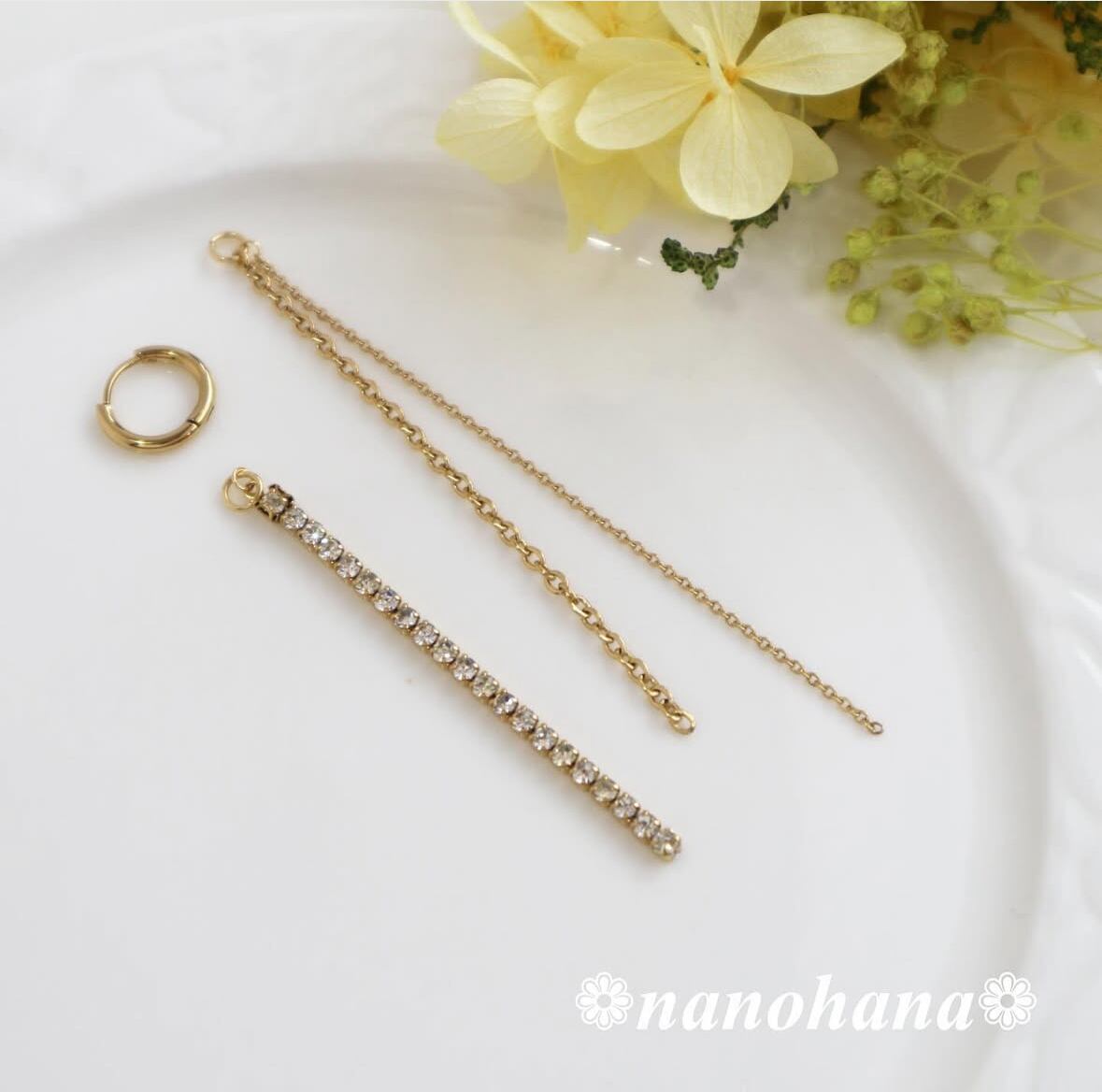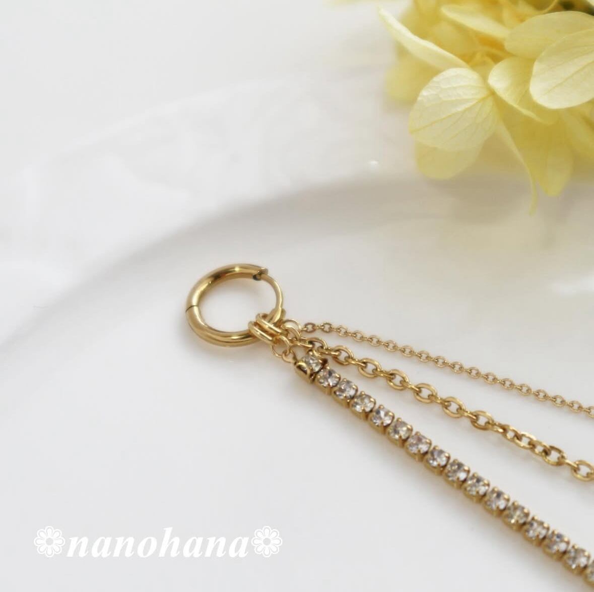 このアクセサリーは、ラインストーン部分を除きすべてサージカルステンレス素材を使用しています。