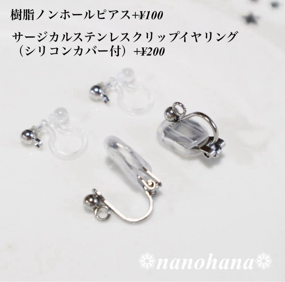 このアクセサリーは、ポストピアスにサージカルステンレス素材を使用しています。