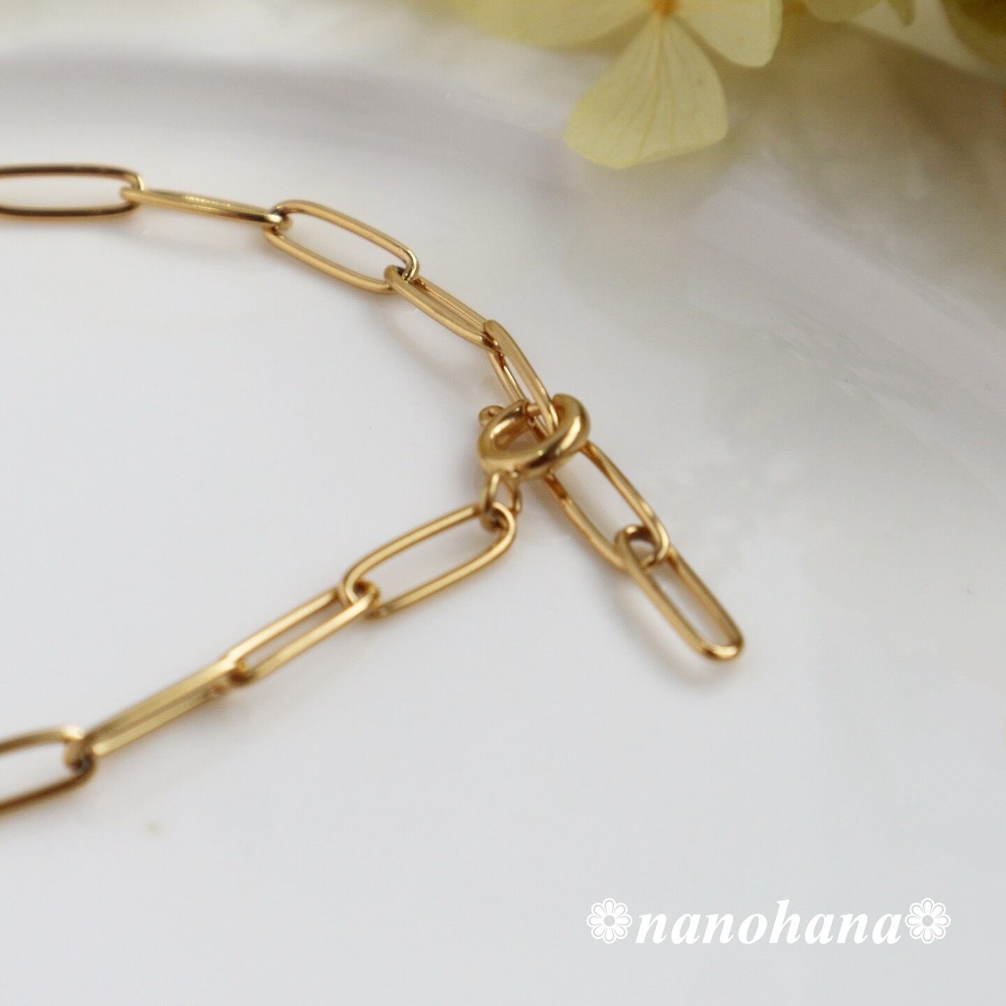 上品なロングオーバルチェーン×存在感ある3.0mmあずきチェーンをミックスしたデザインブレスレット。