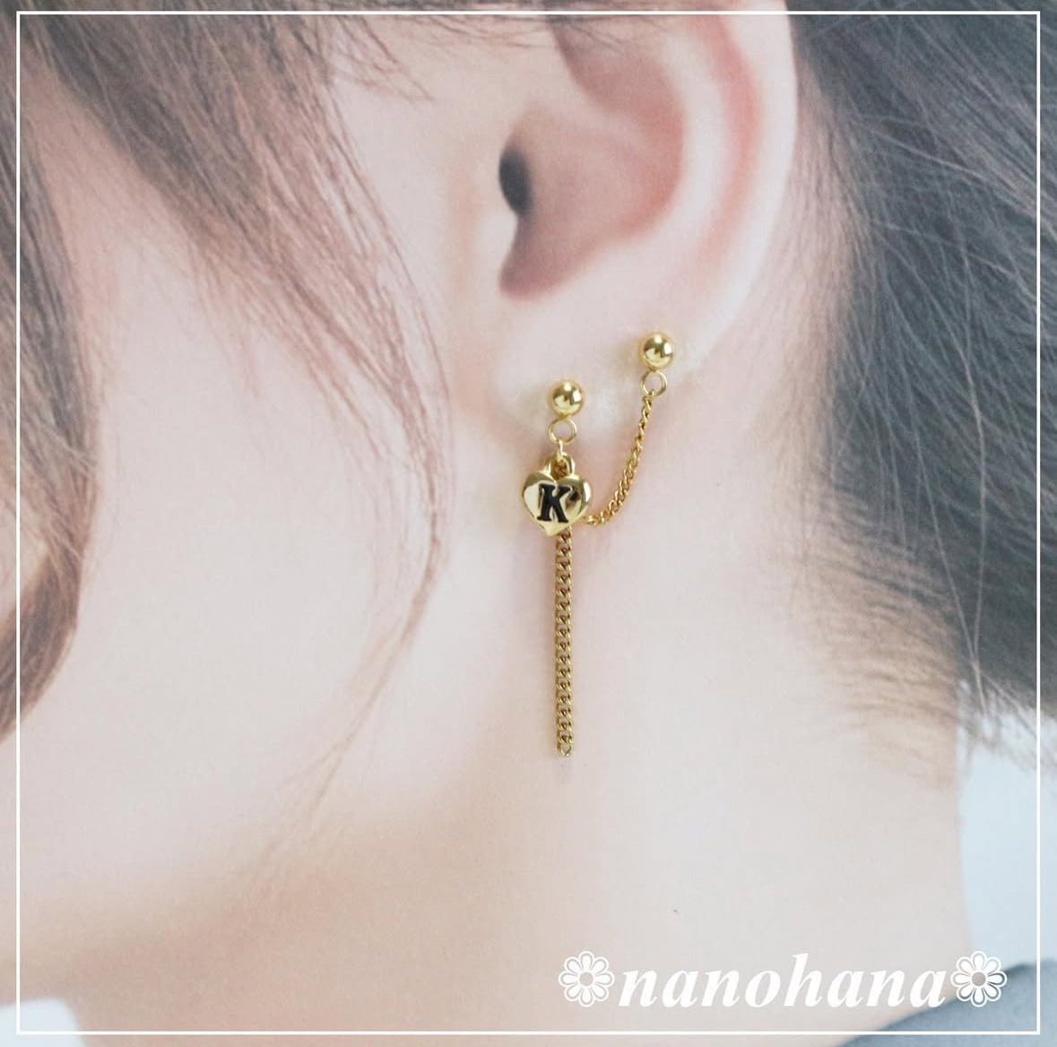 《 イニシャルハートK 2連チェーンピアス 》101(サージカルステンレス/片耳用)