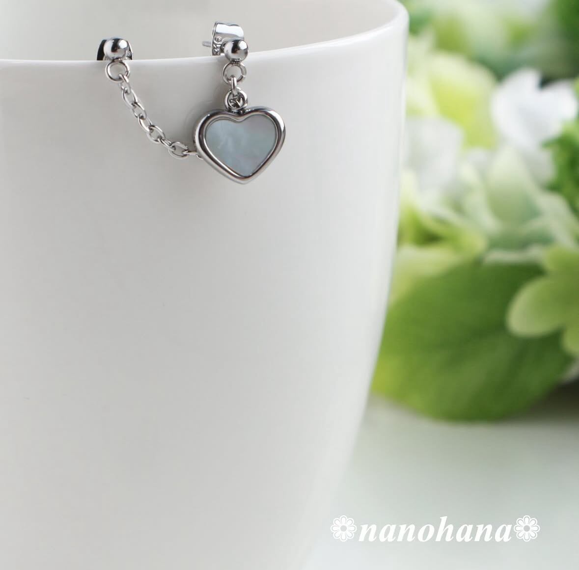 シェルの自然な輝きが角度によってやさしく変化する、小さなハートの2連ピアス♡