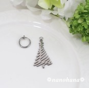 《 クリスマスチャーム付フープイヤリング・フェイクピアスシルバー 》400(片耳用・サージカルステンレス)