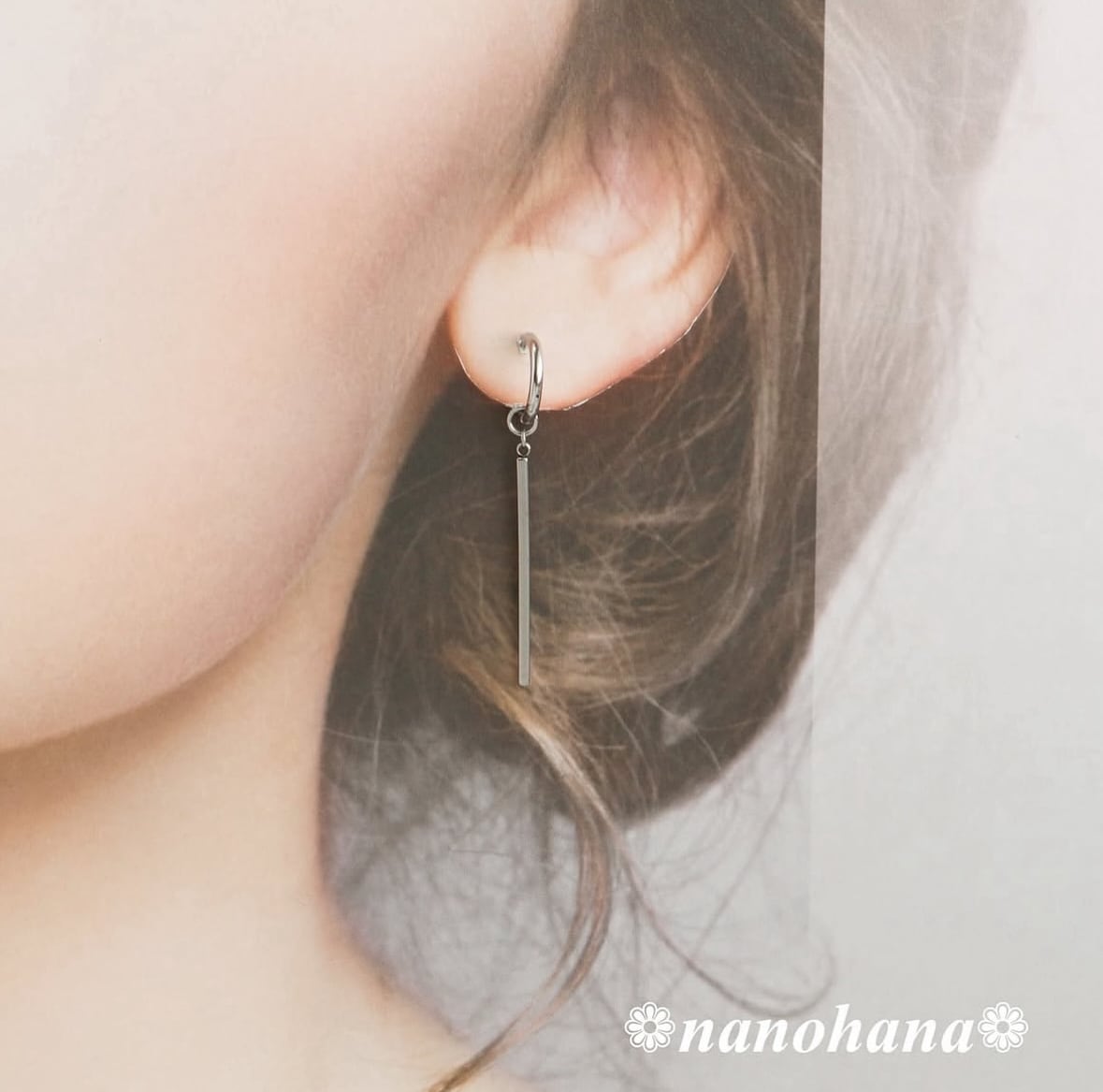 シンプルなフープに、スティックパーツを付け替えて楽しめる2wayピアスセット