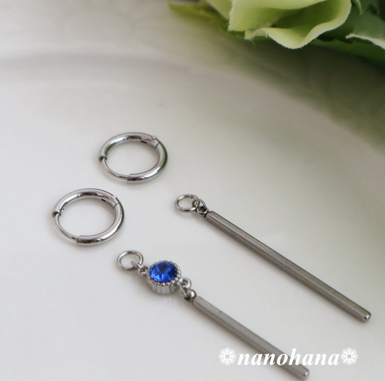 このピアスはストーン部分を除き、すべてサージカルステンレス316Lを使用しています。