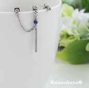 ✴︎ 夜空にきらめくサファイア ✴︎ 《 ストーン付スティック2連ピアス・アシンメトリー 》078(オールサージカルステンレス)