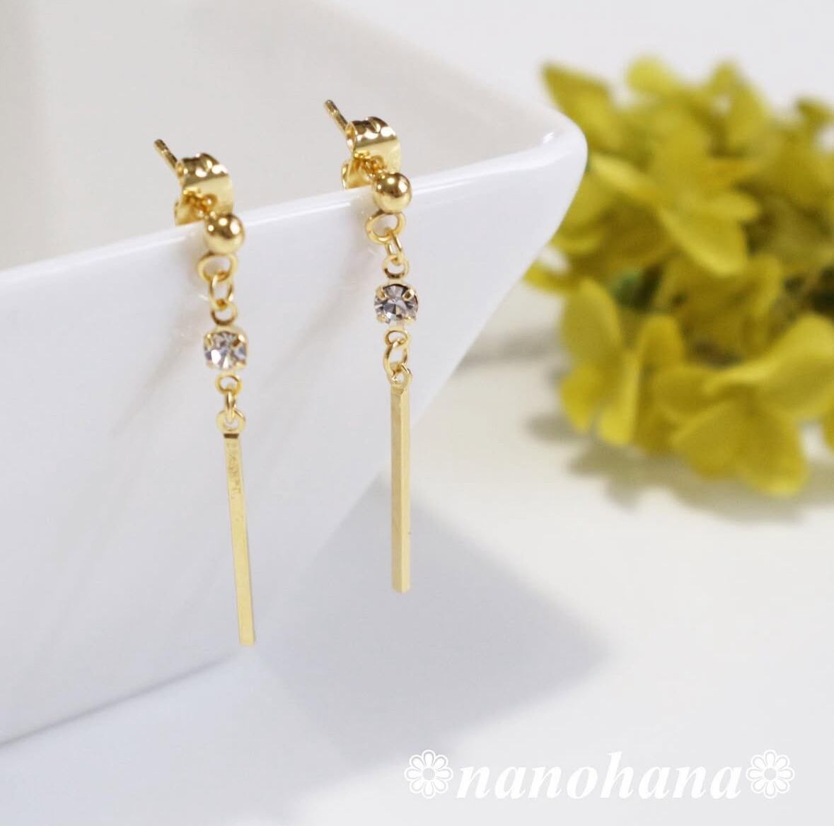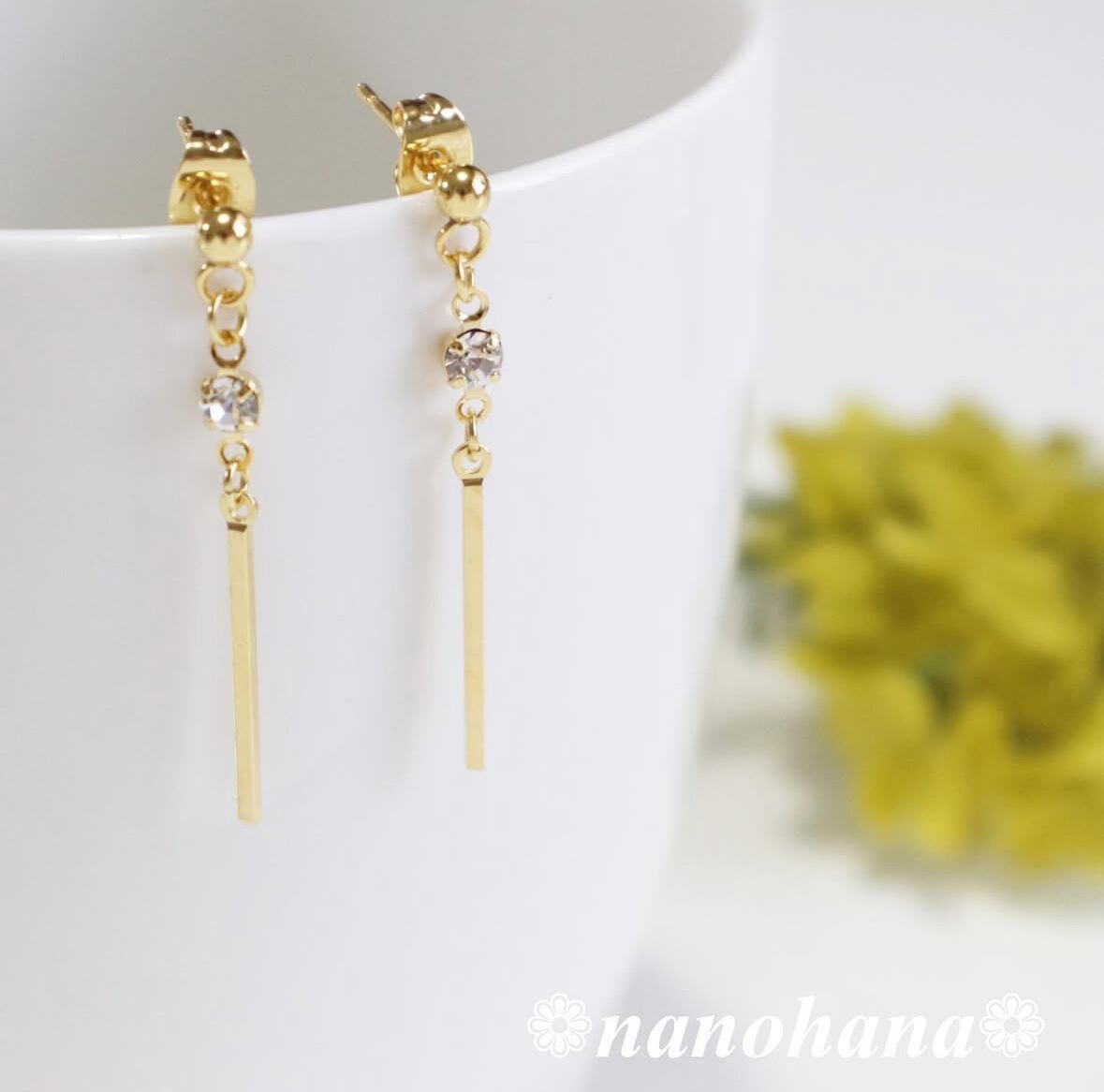 《 ラインストーン付スティックピアス・ゴールド 》019(サージカルステンレス)