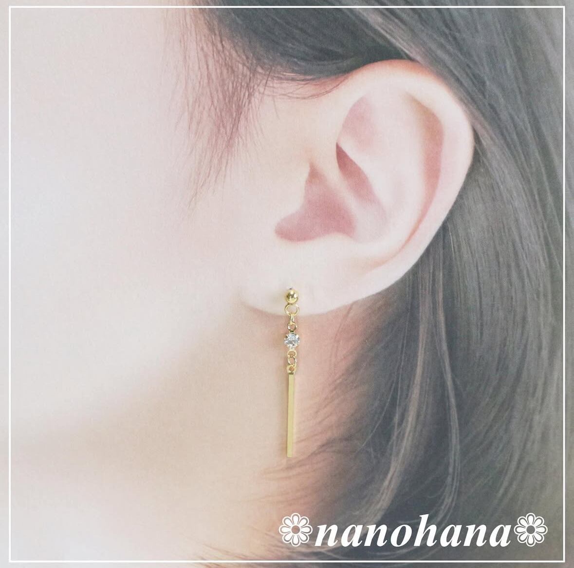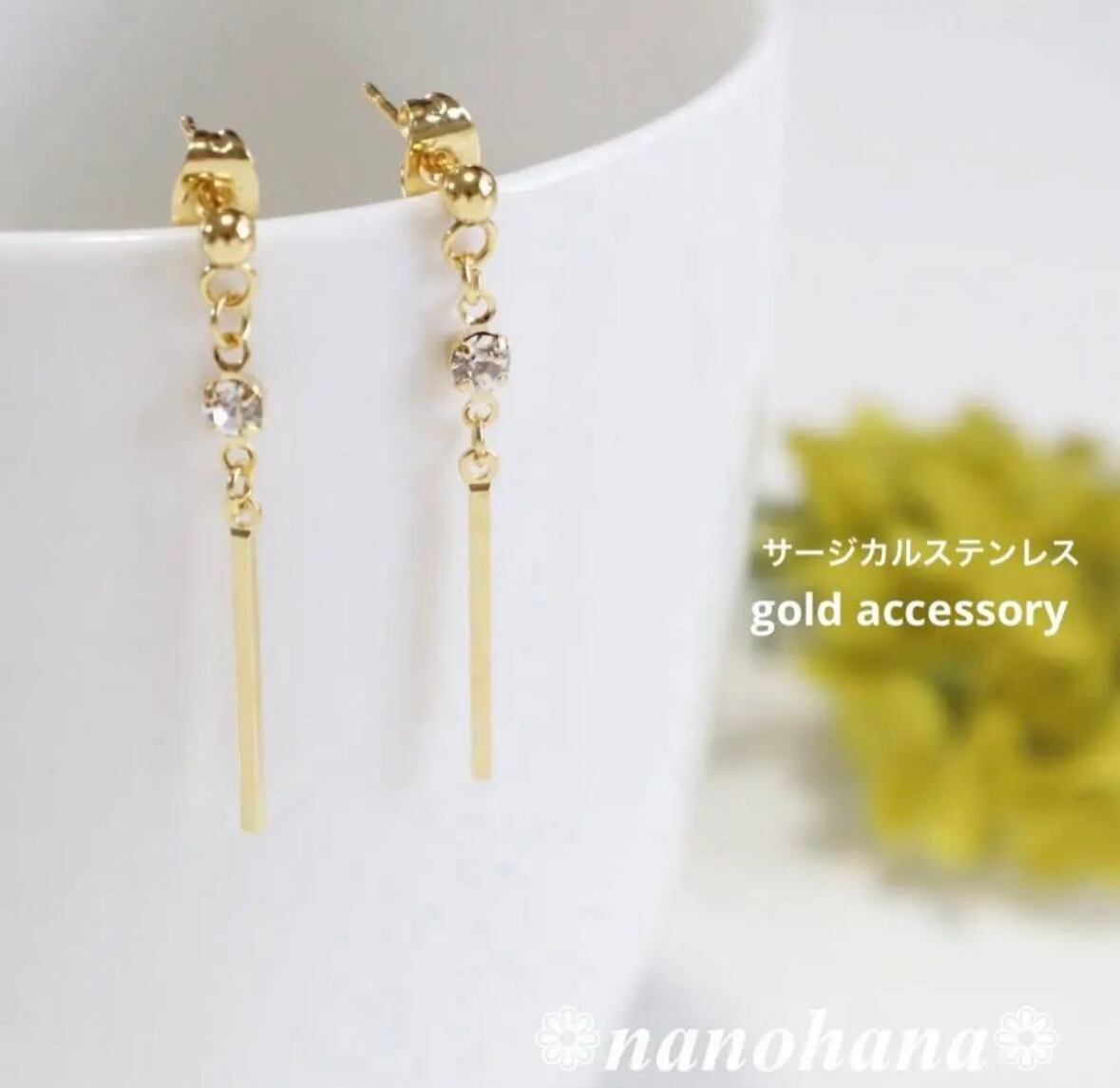このピアスは、ポスト・キャッチ部分にサージカルステンレス製のゴールドパーツを使用しています。