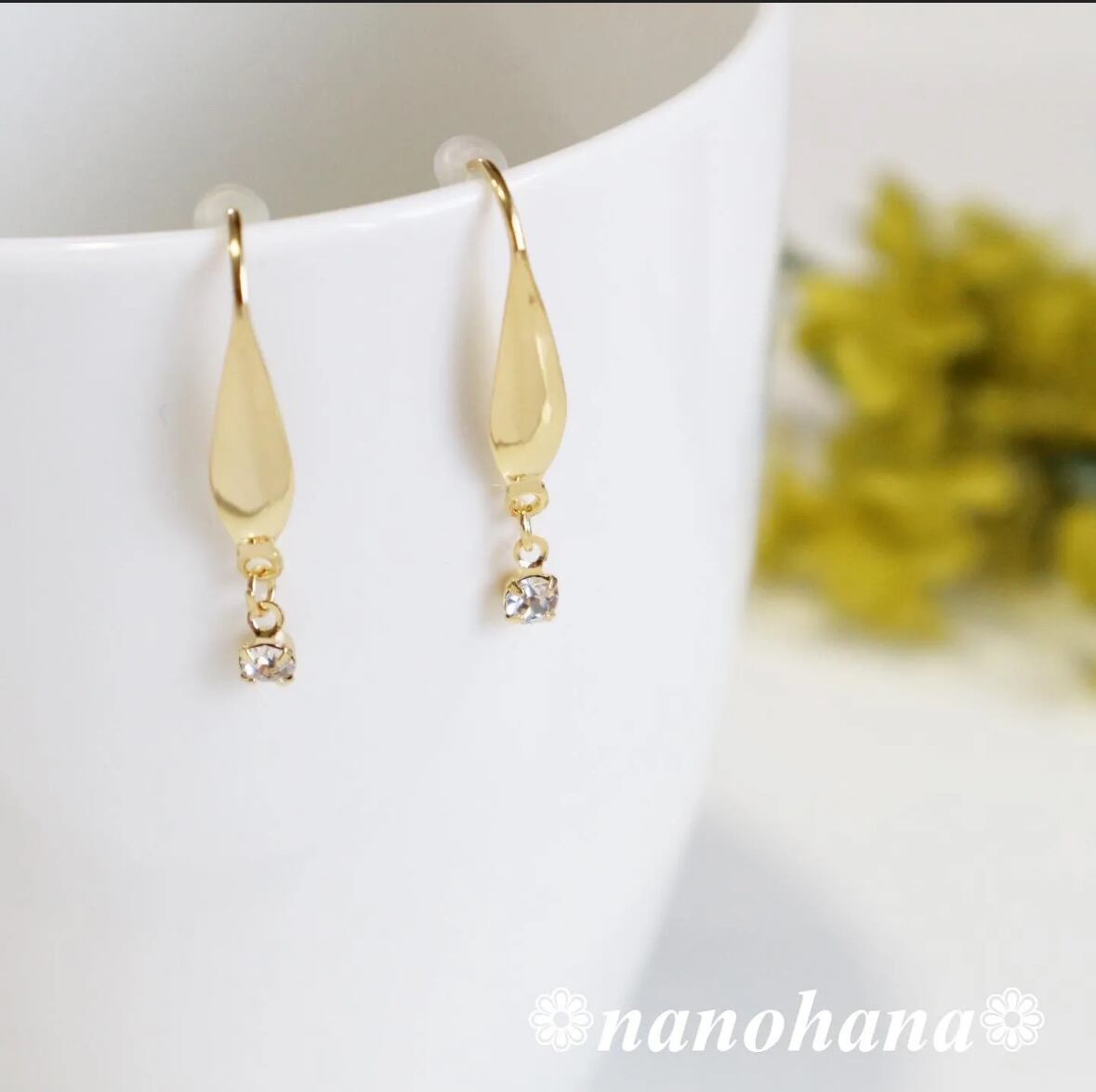 ゴールド/サージカルステンレス/フックタイプ/ラインストーン