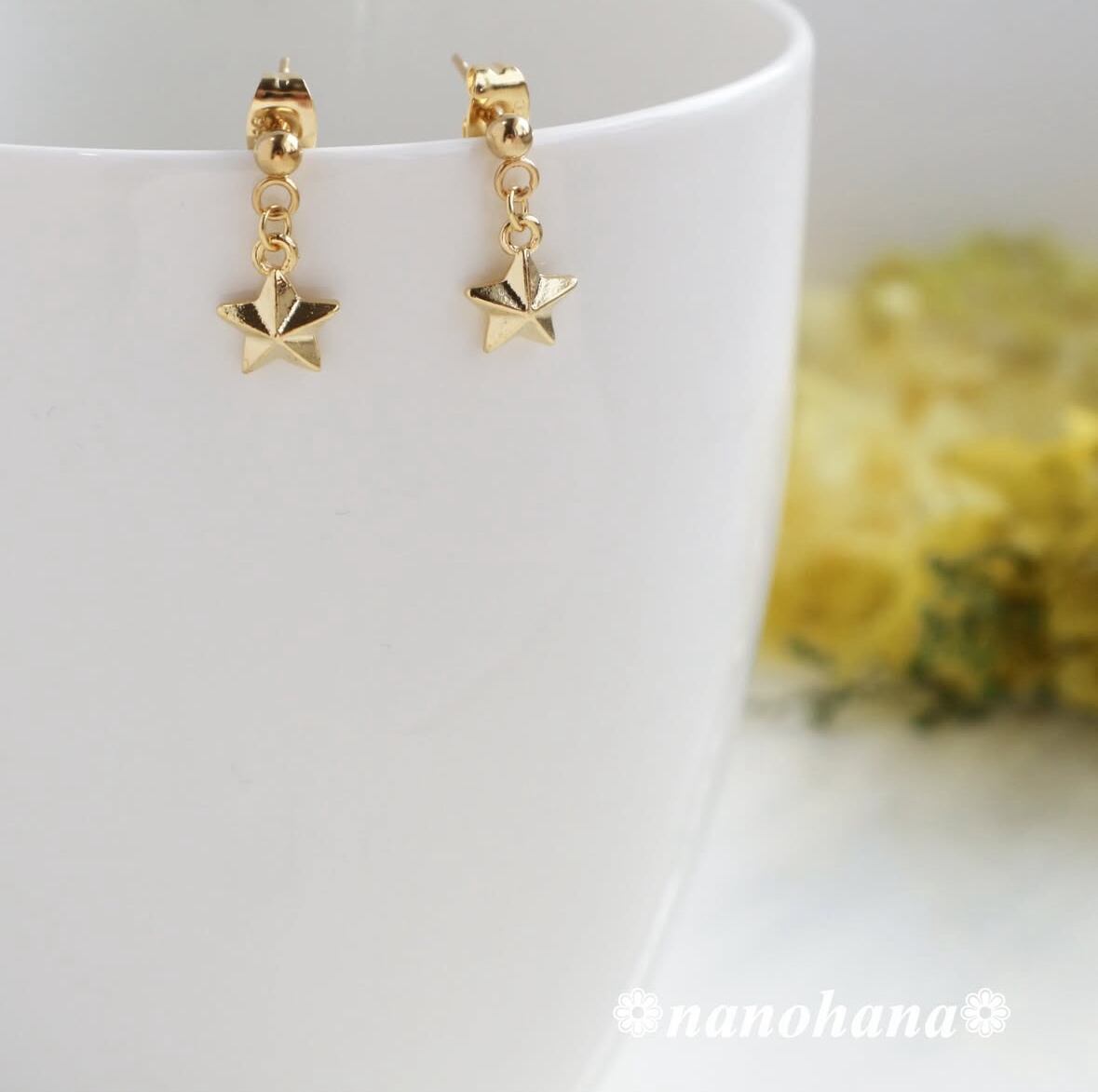 16Kgpを使用した星モチーフが上品に輝く、シンプルで使いやすいピアスです。