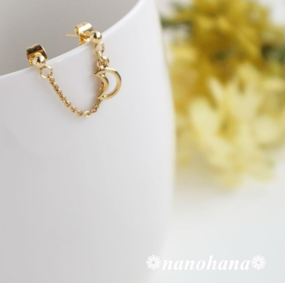 《 ゴールド月2連短チェーンピアス 》D②(サージカルステンレス・片耳用)【訳あり特価】