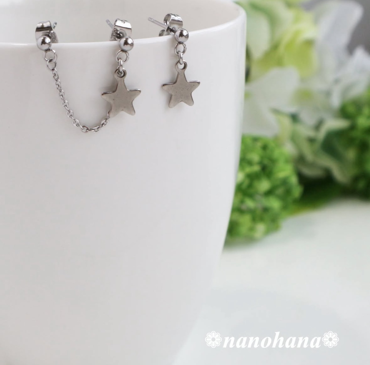 小さな星が耳元でふわりと揺れる、上品かわいい2連デザイン。