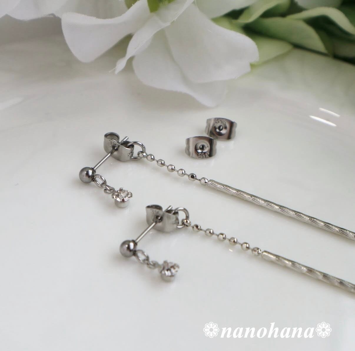 ピアス金具・キャッチにはサージカルステンレスを使用しています。
