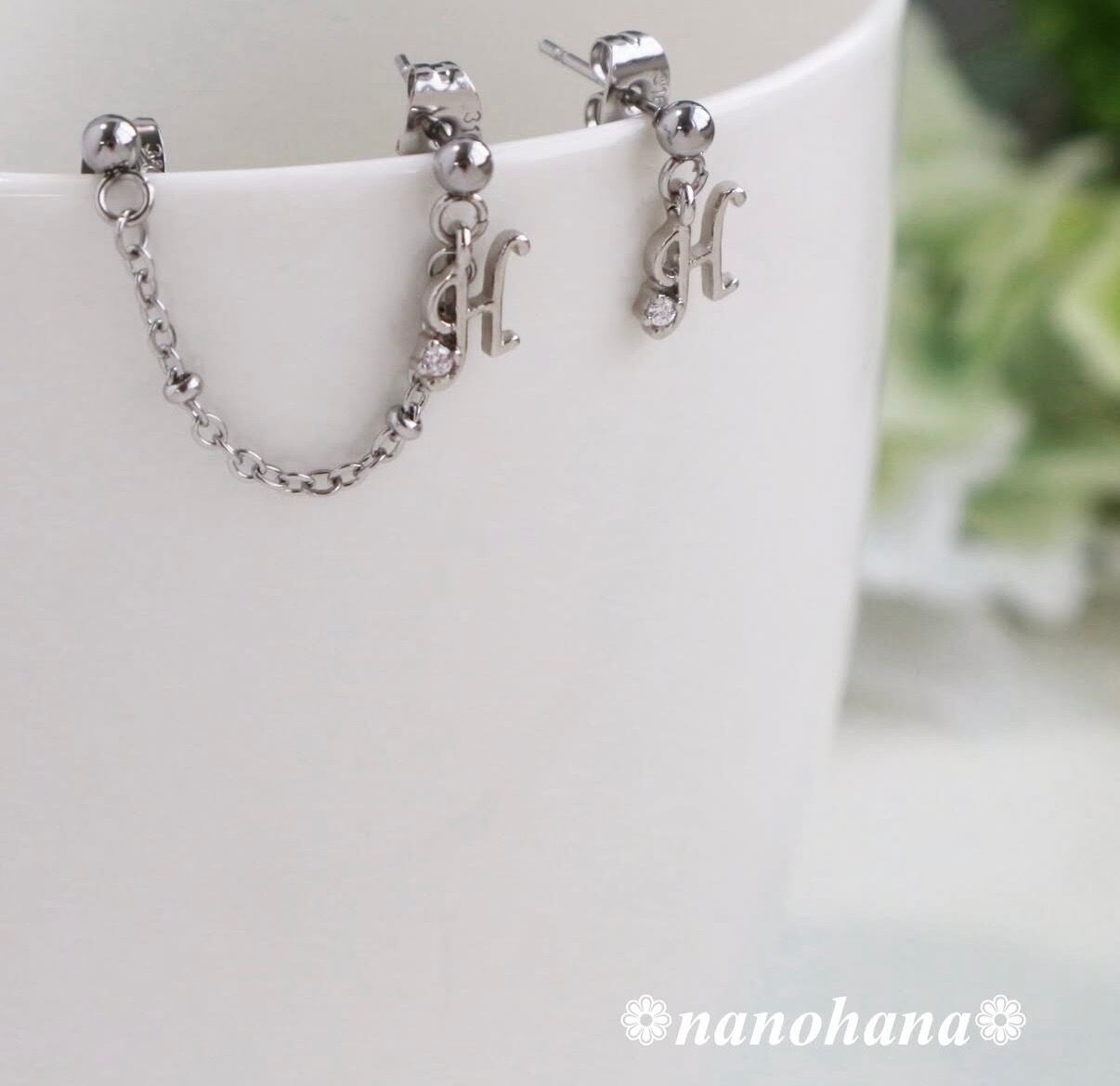 《 ジルコニア付イニシャルH 2連チェーンピアス 》292(サージカルステンレス/片耳2穴用)