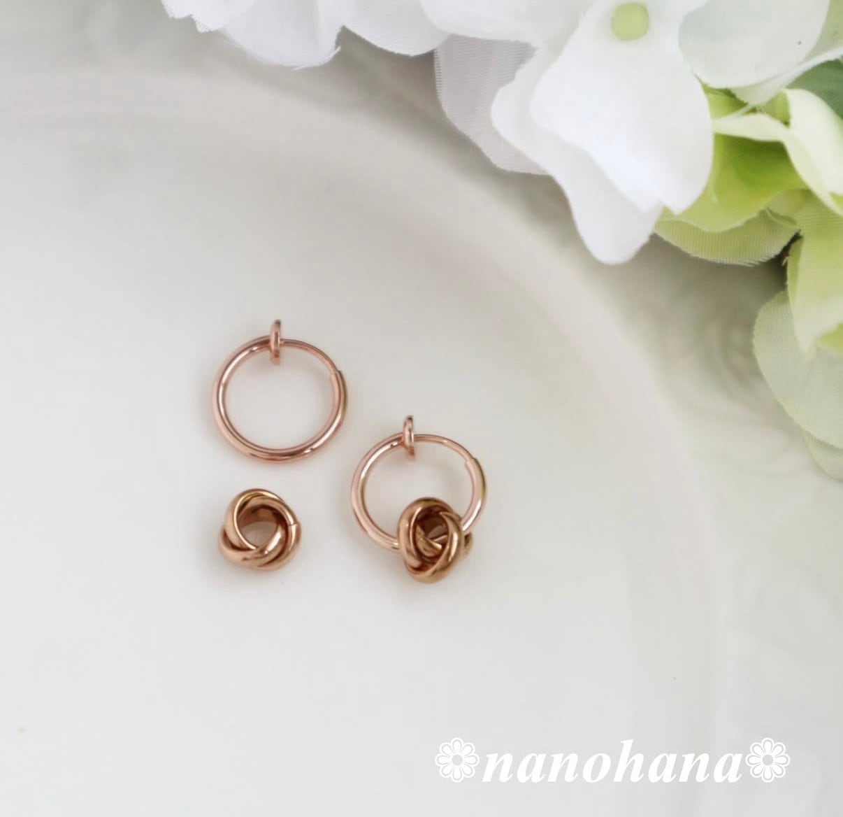 耳に穴が開いていない方でも使える痛くなりにくい挟むタイプのフープイヤリングです。