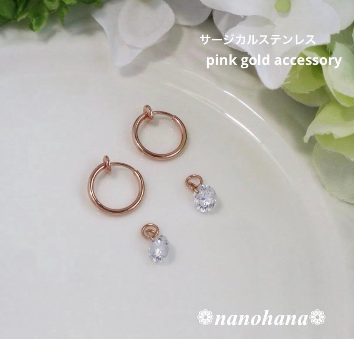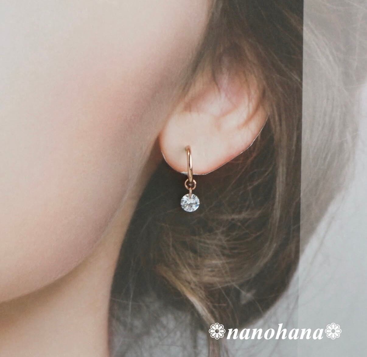 ✴︎ 大粒ジルコニアが耳元で揺れる ✴︎ 《 大粒ジルコニアチャーム付きイヤリング 》700(サージカルステンレス/ピンクゴールド)