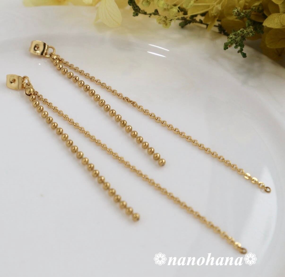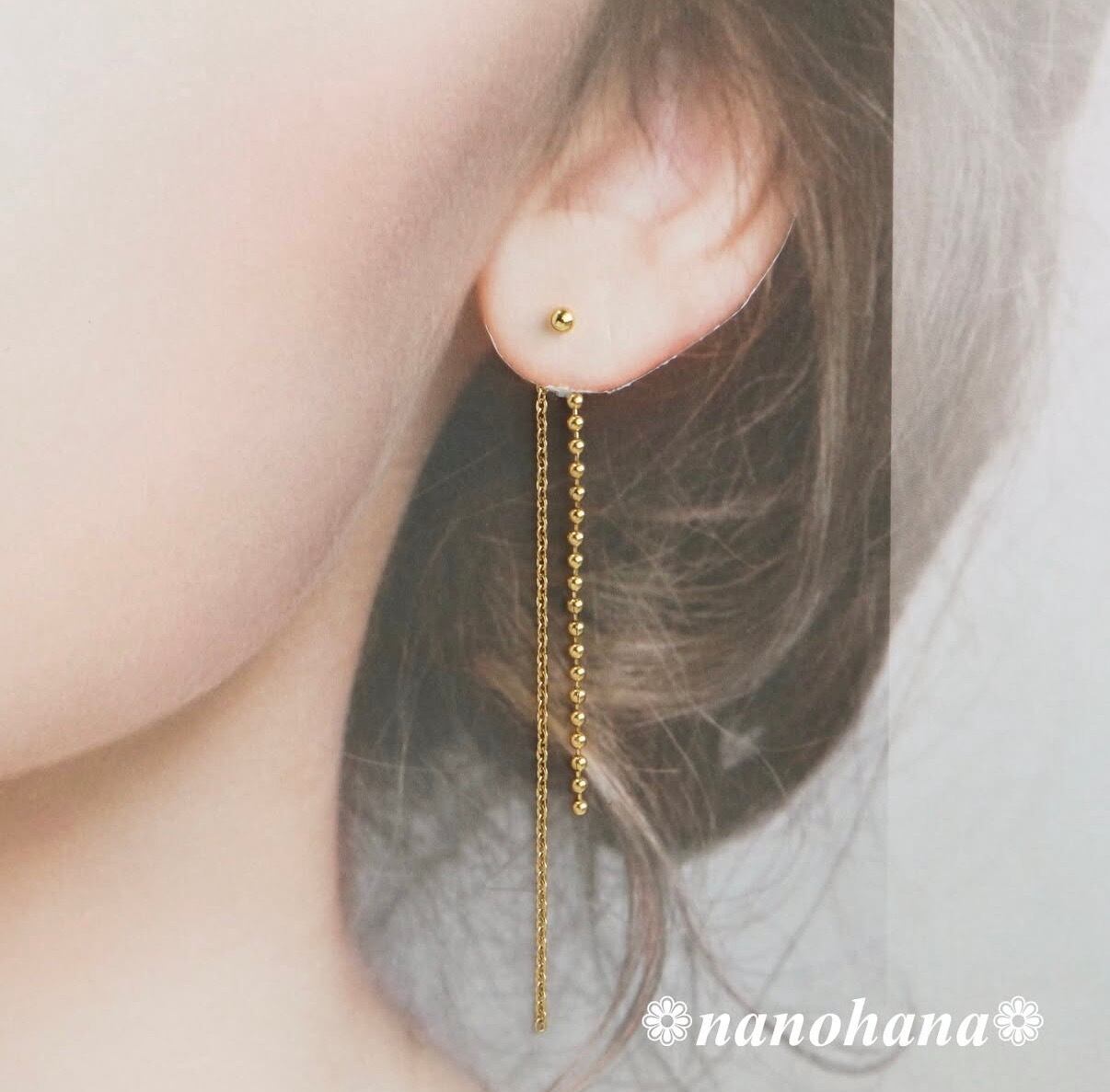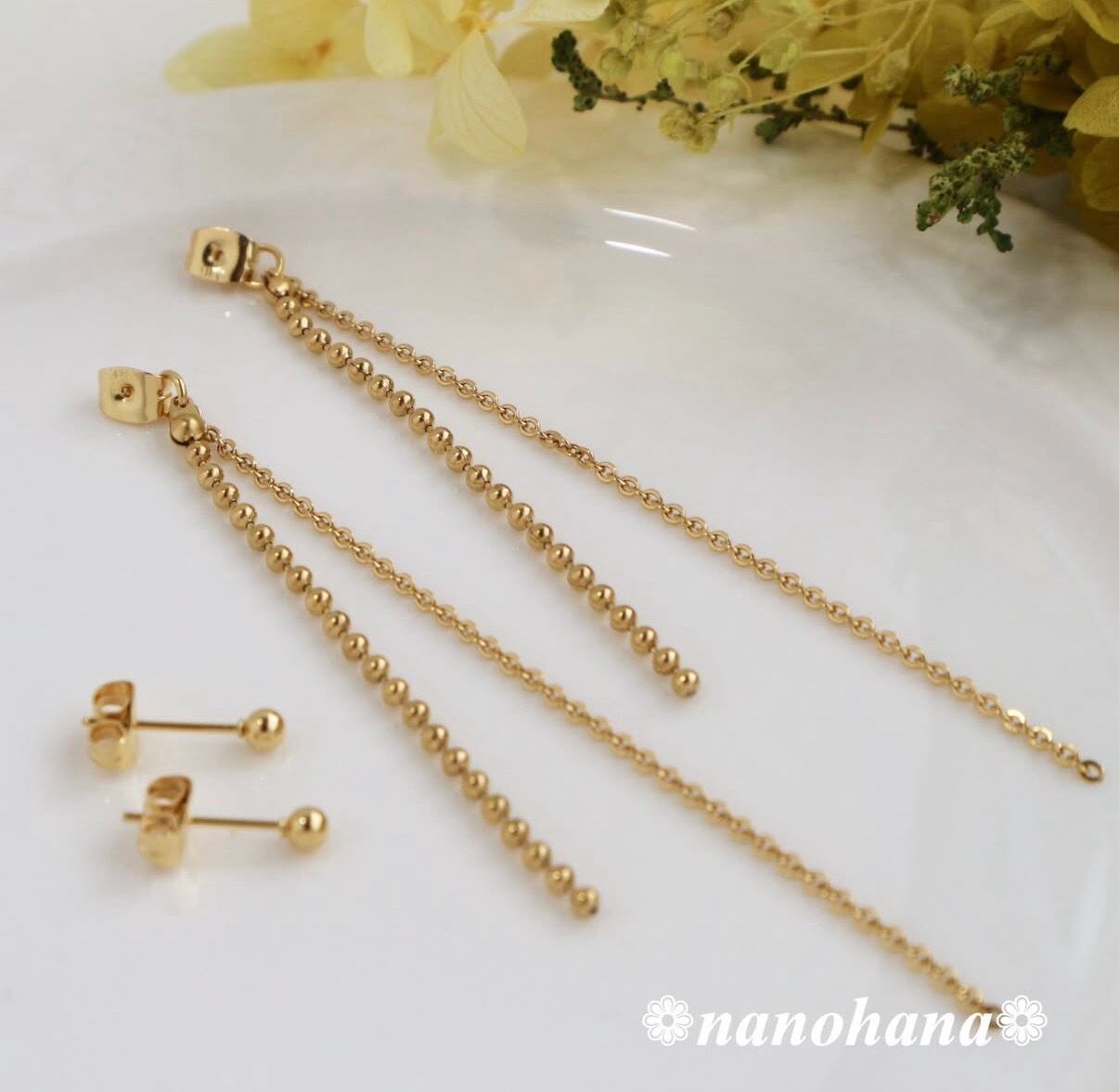 ✴︎ シンプルに揺れる、上品チェーン ✴︎ 《 チェーン付ゴールドキャッチ・あずき&ボール 》417(オールサージカルステンレス)