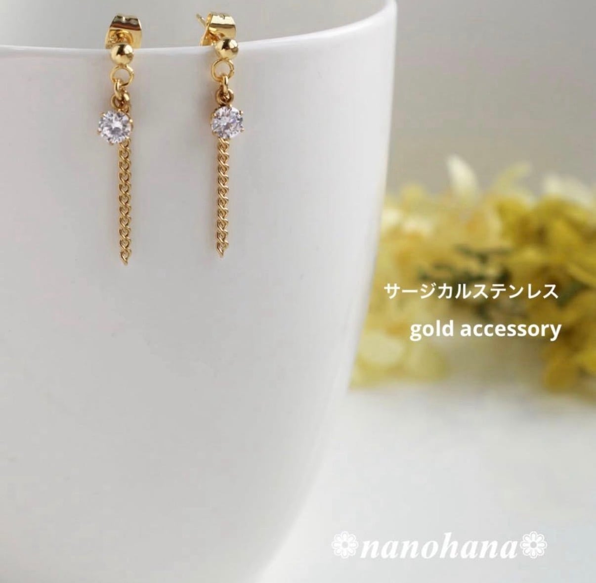 ゴールドカラーのパーツには、ニッケルを含まないメッキ処理が施されており、金属アレルギーの方にも比較的安心な仕様です。