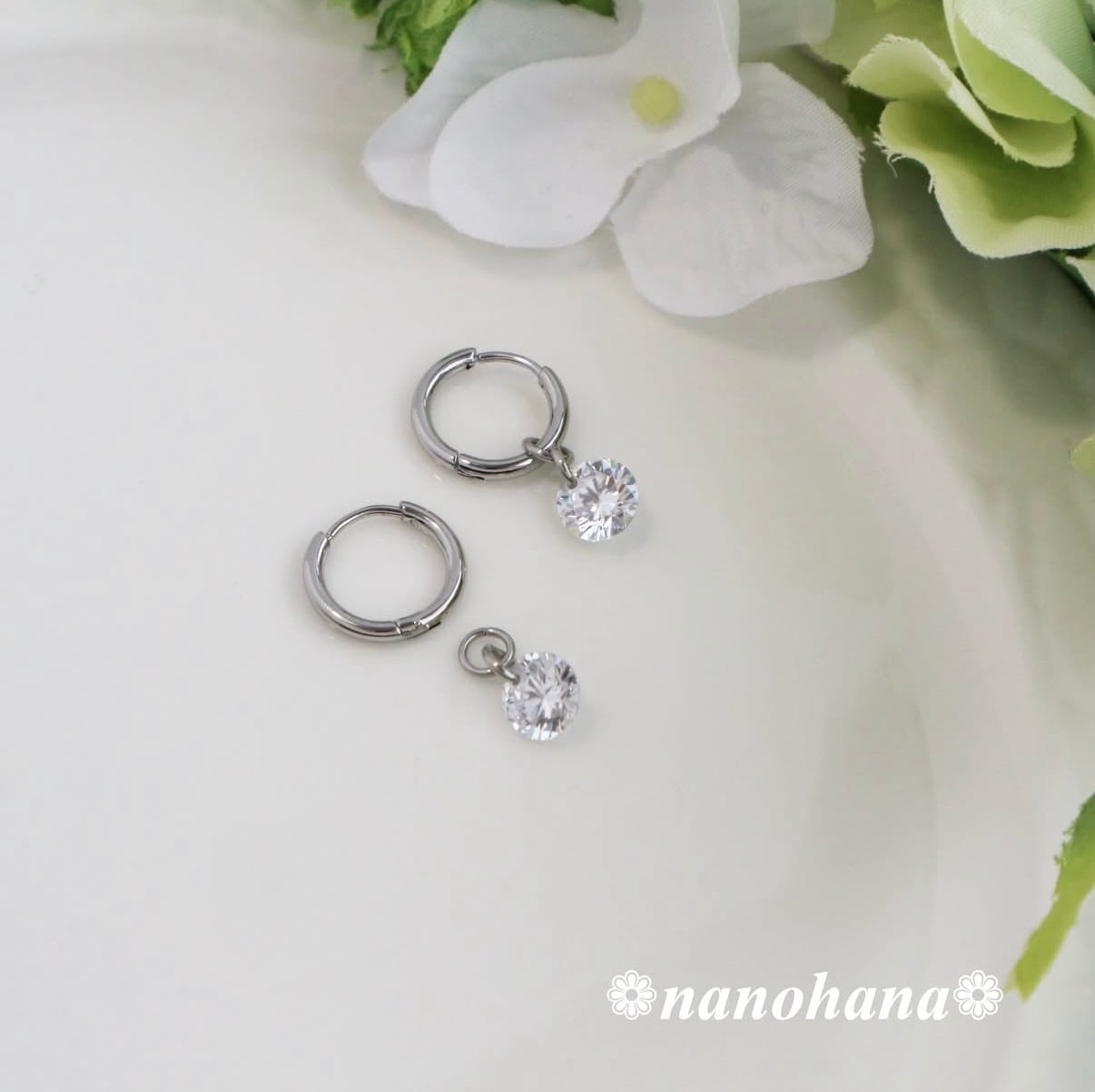 ✴︎ さりげなく、上品にきらめく ✴︎ 《 大粒ジルコニアチャーム付きピアス・シルバー 》700A(サージカルステンレス)