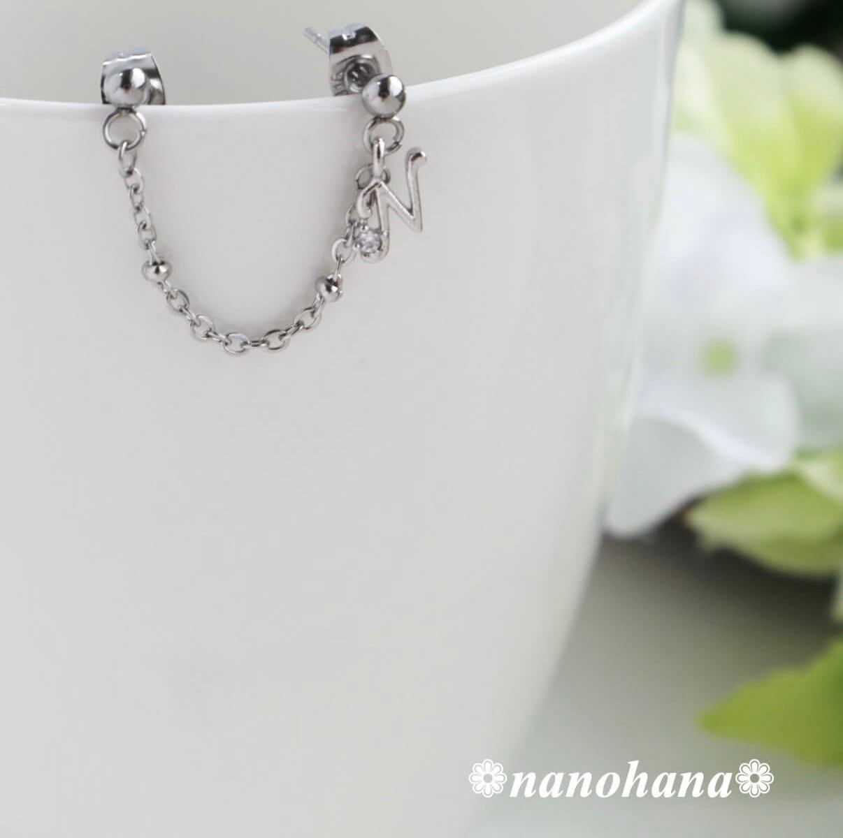 ✴︎ きらりと想いをつなぐ ✴︎ 《 ジルコニア付イニシャルN2連チェーンピアス 》296(サージカルステンレス/片耳用)