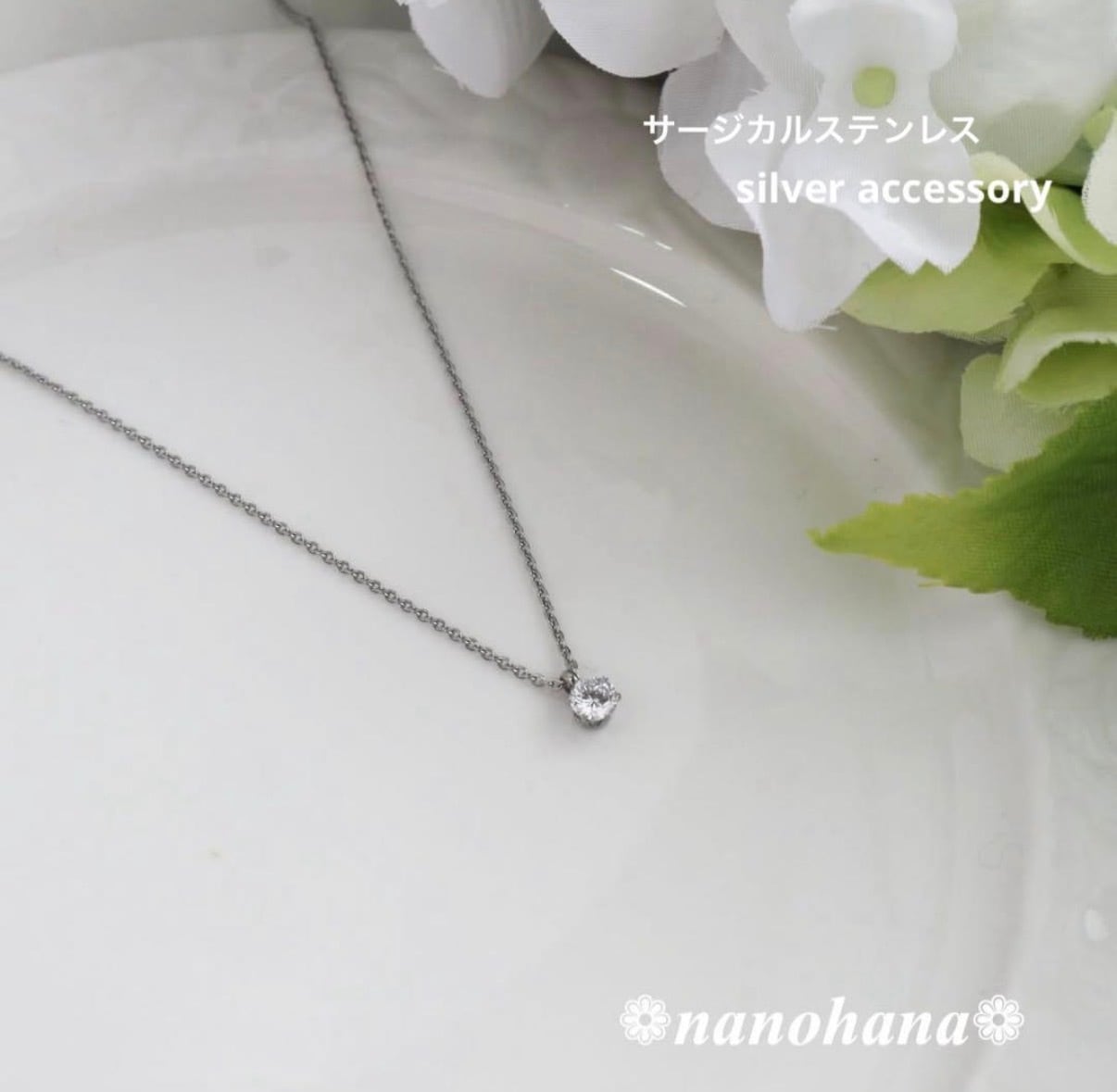 サージカルステンレスを使用した、シンプルで上品なネックレスです。小さなジルコニアが胸元でさりげなく輝き、控えめながらも美しい存在感を演出します。