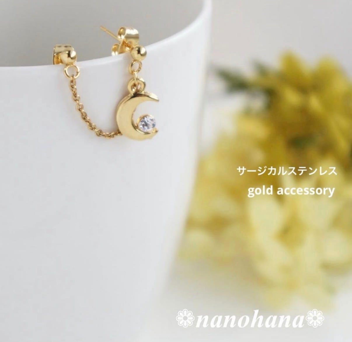 このアクセサリーは、肌に触れるチェーンやポスト部分にサージカルステンレスを使用しています。