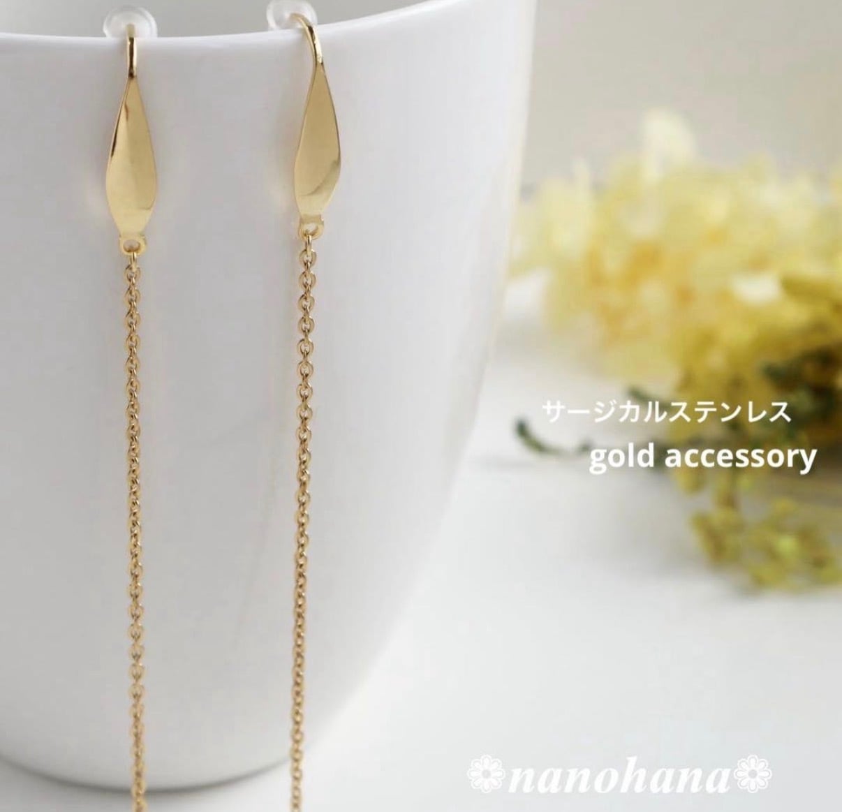 ゴールド/チェーンピアス/サージカルステンレス/デザインフック/アレルギー対応