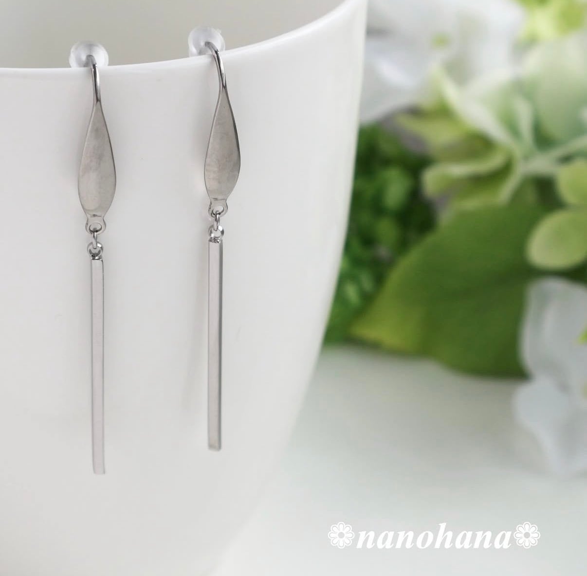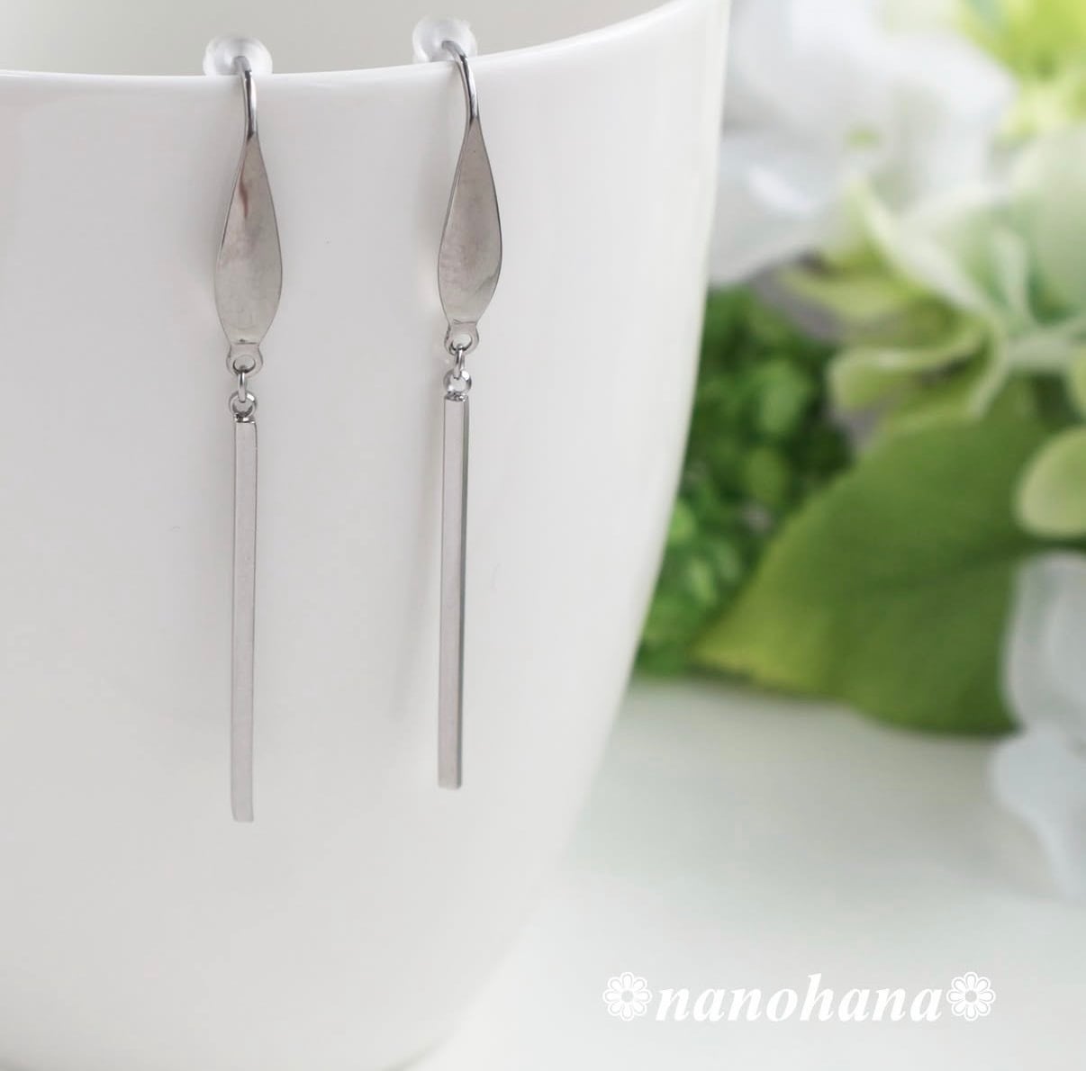 ✴︎ すらりと揺れてクールに輝く ✴︎ 《 スティック付デザインフックピアス・シルバー 》557(オールサージカルステンレス)