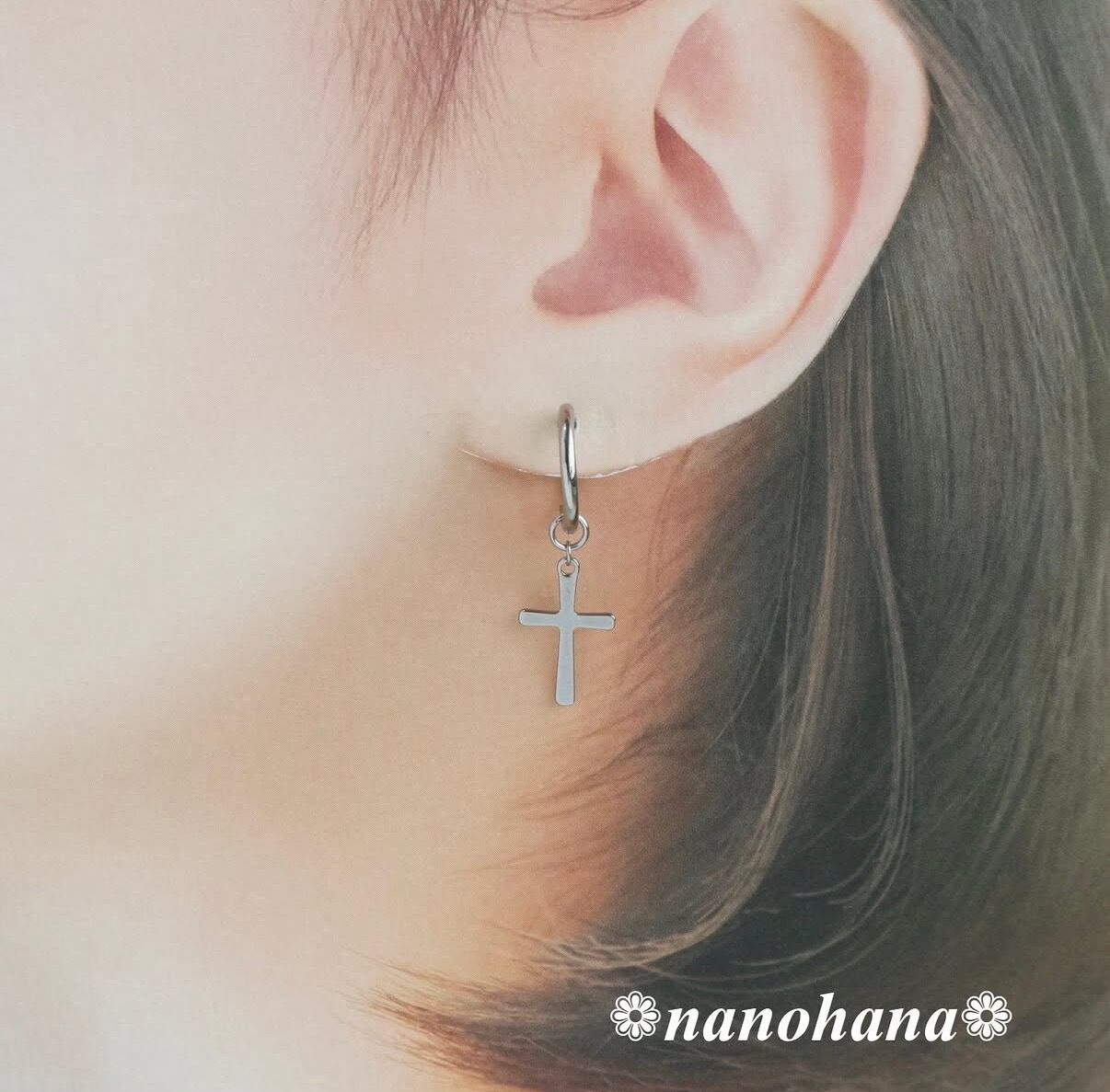 シルバー/サージカルステンレス/フープイヤリング/チャームセット/十字架/星/チェーン/カスタムアクセサリー