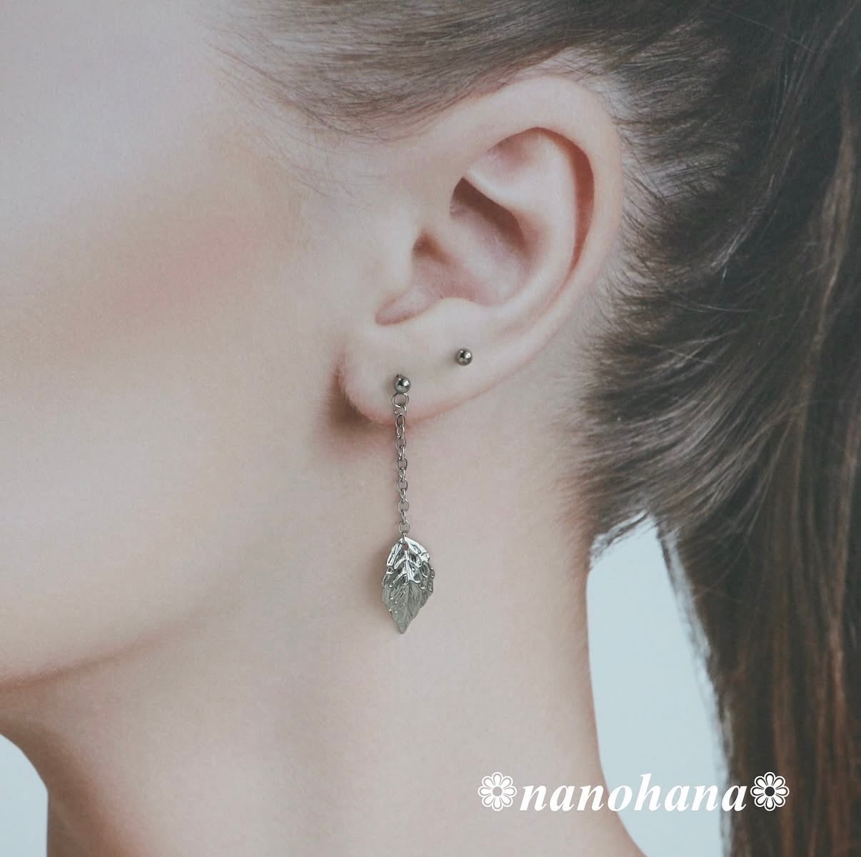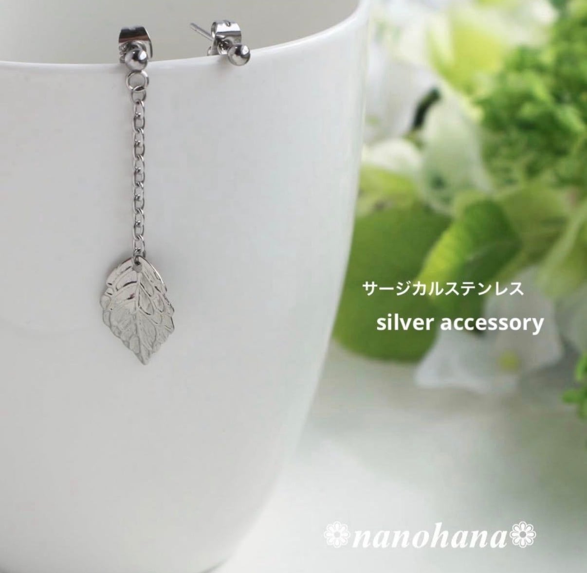 シルバー/サージカルステンレス/アシンメトリー/リーフ/揺れるピアス