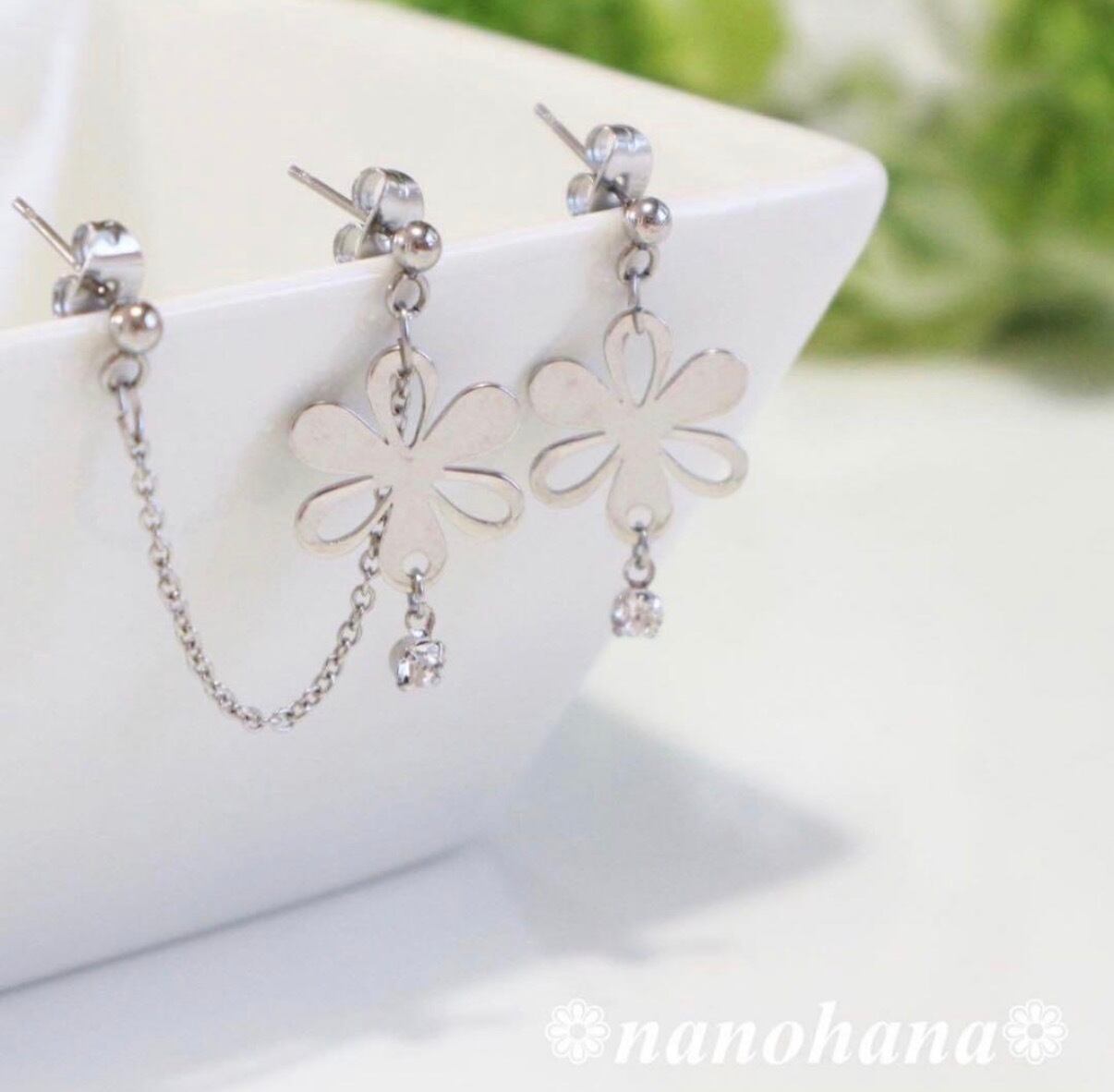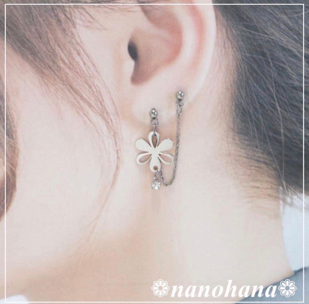 限定1点❁ 《 Flower2連ピアス・シルバー 》K②(サージカルステンレス・2穴片耳用+1穴片耳用)