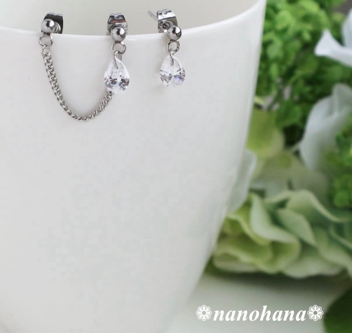 シルバー ジルコニア ドロップ チェーンピアス 揺れるピアス 金属アレルギー対応