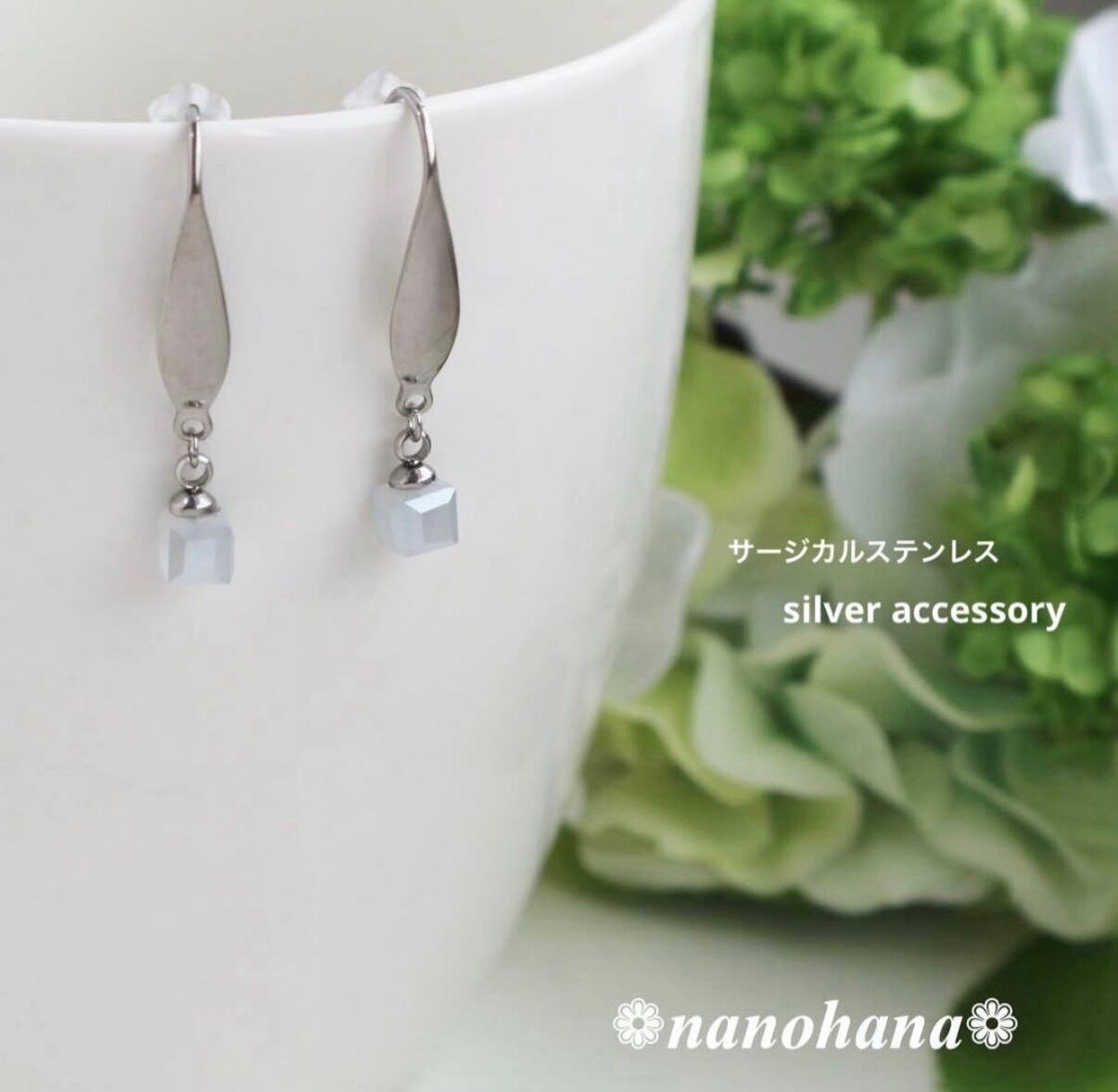 このアクセサリーは、ピアス金具にサージカルステンレスを使用しています。