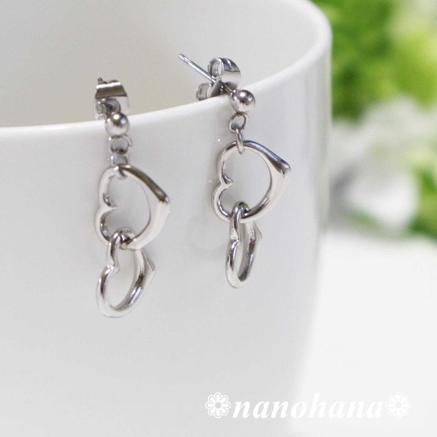 《 シンプルダブルハートピアス・シルバー》136サージカルステンレス