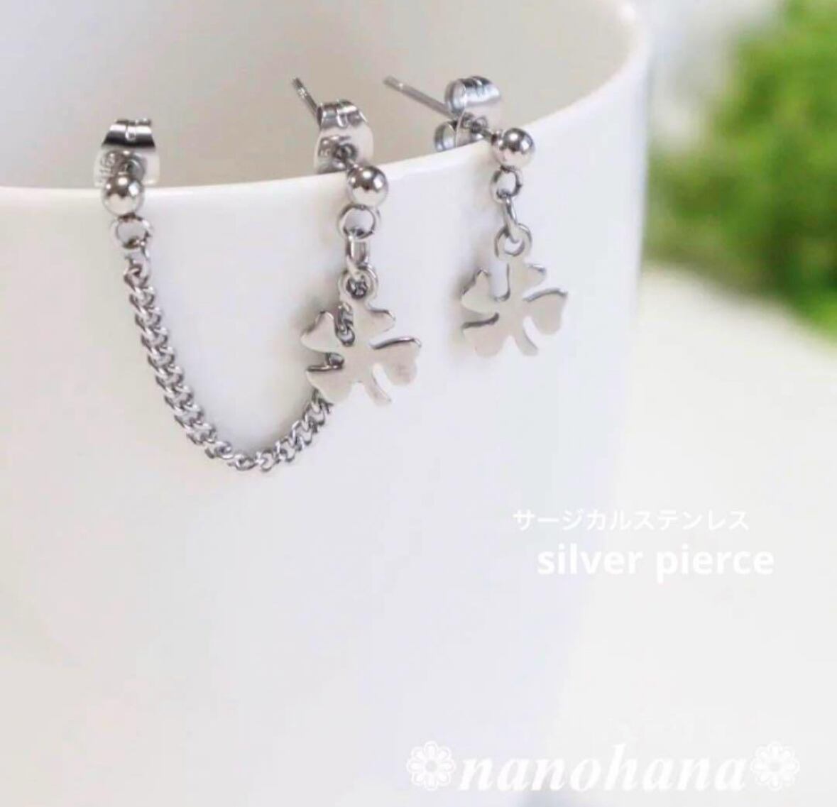 《クローバー2連チェーンピアス・シルバー》455オールサージカルステンレス