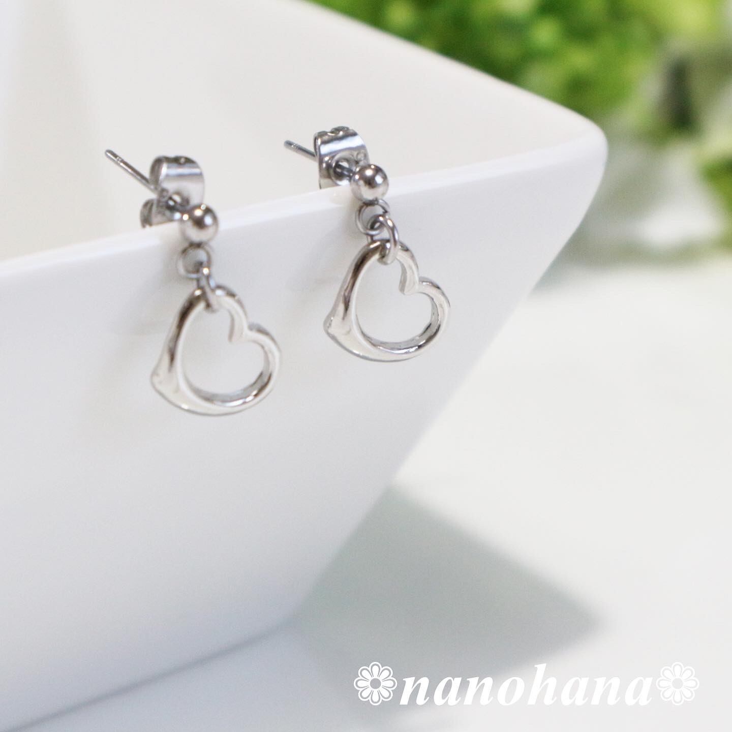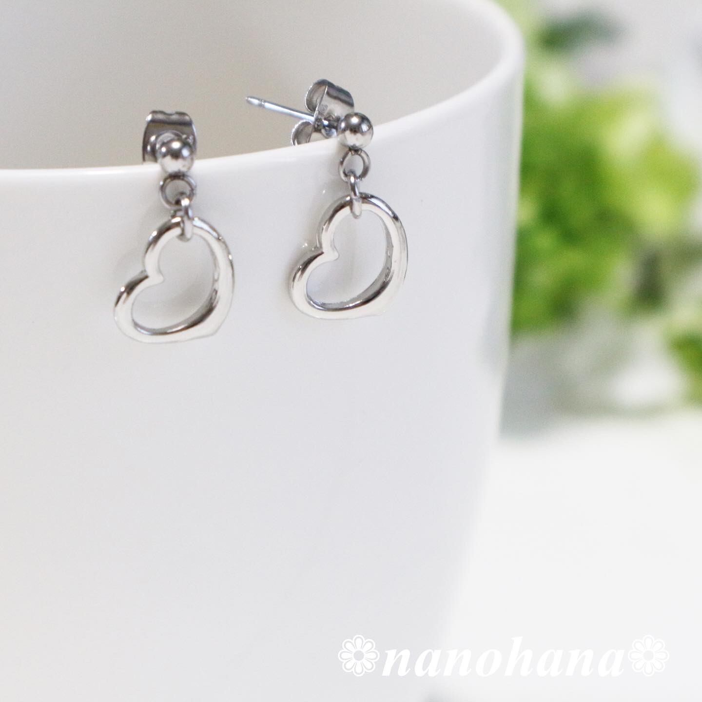 《 シンプルハートピアス・シルバー》124サージカルステンレス