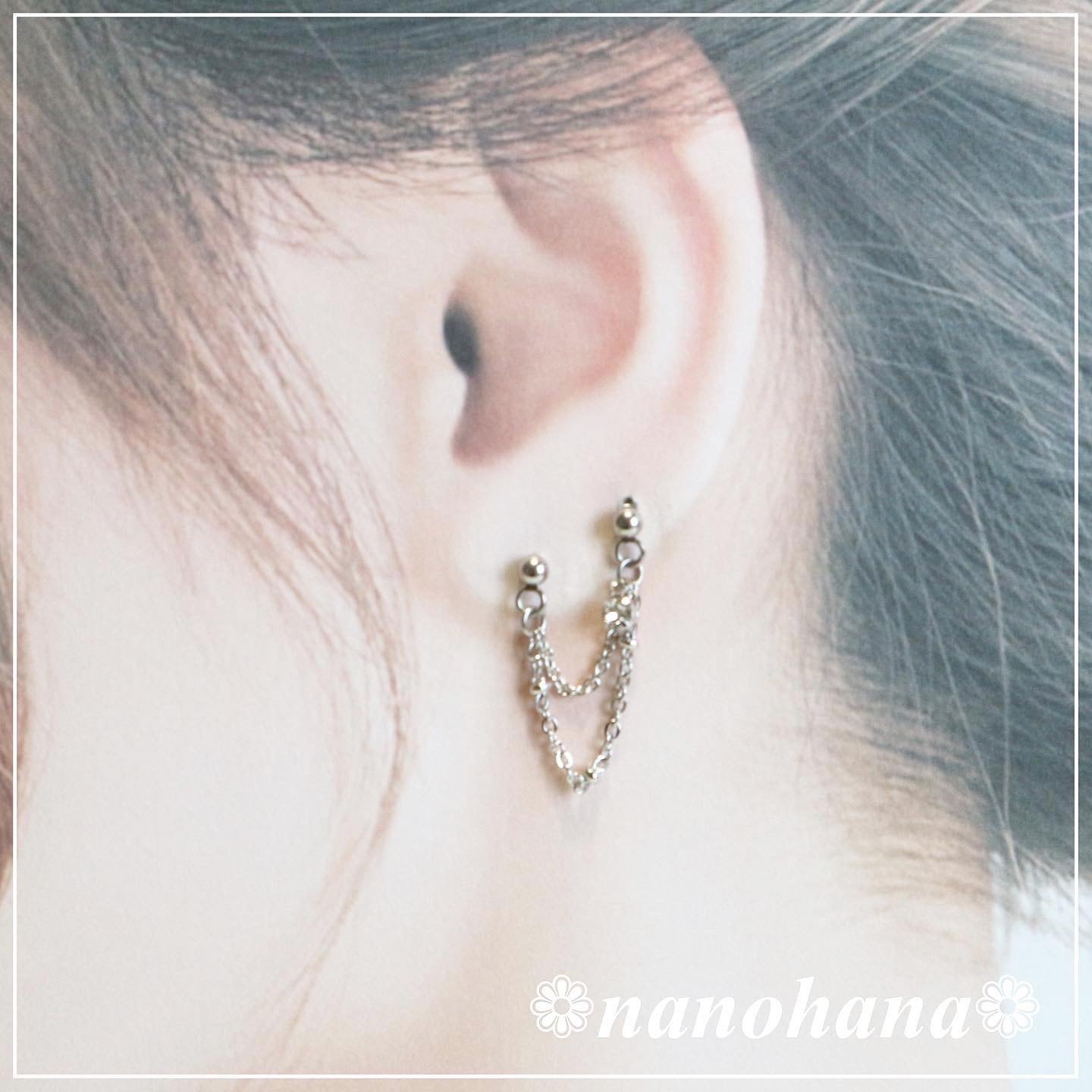 《ダブルチェーン・バタフライピアス・ シルバー 》196 サージカルステンレス
