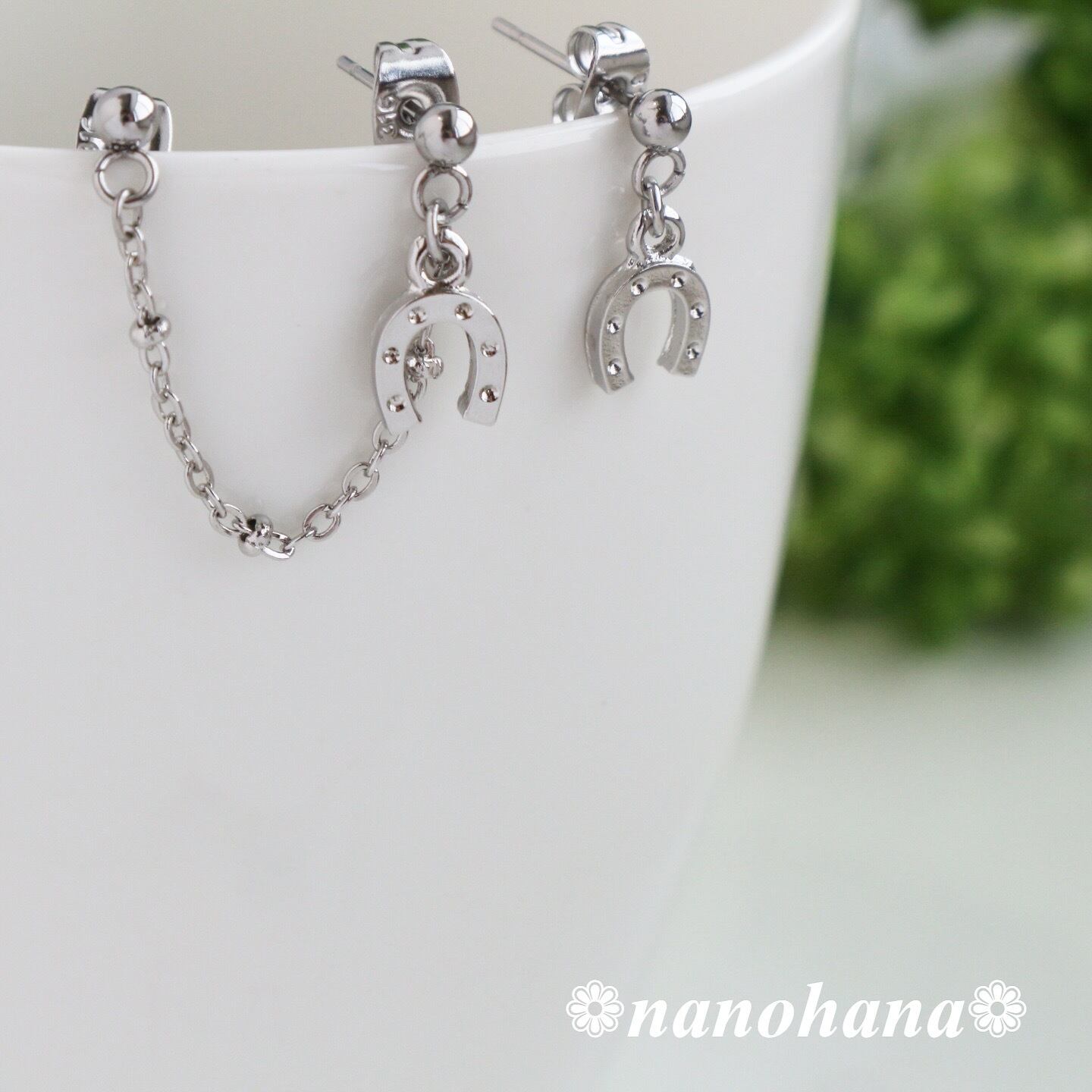 《ホースシュー2連ピアス・シルバー 》442サージカルステンレス